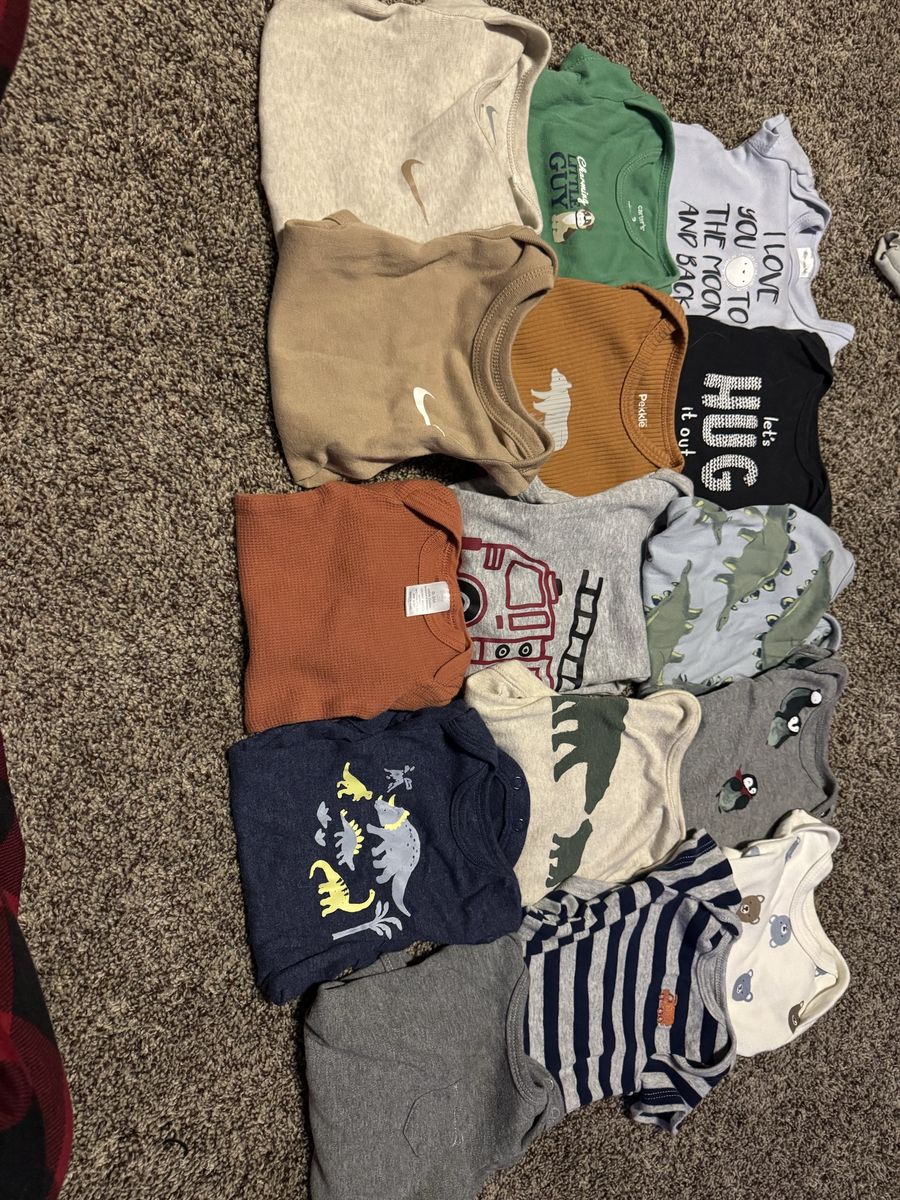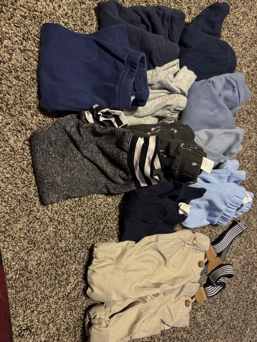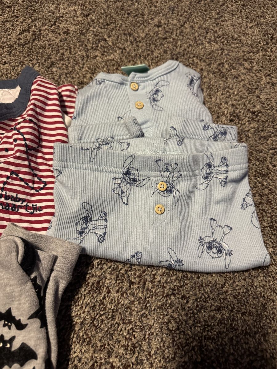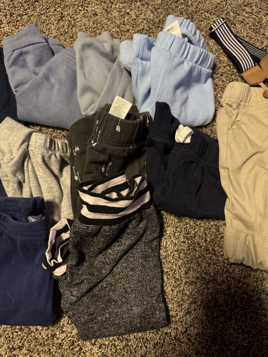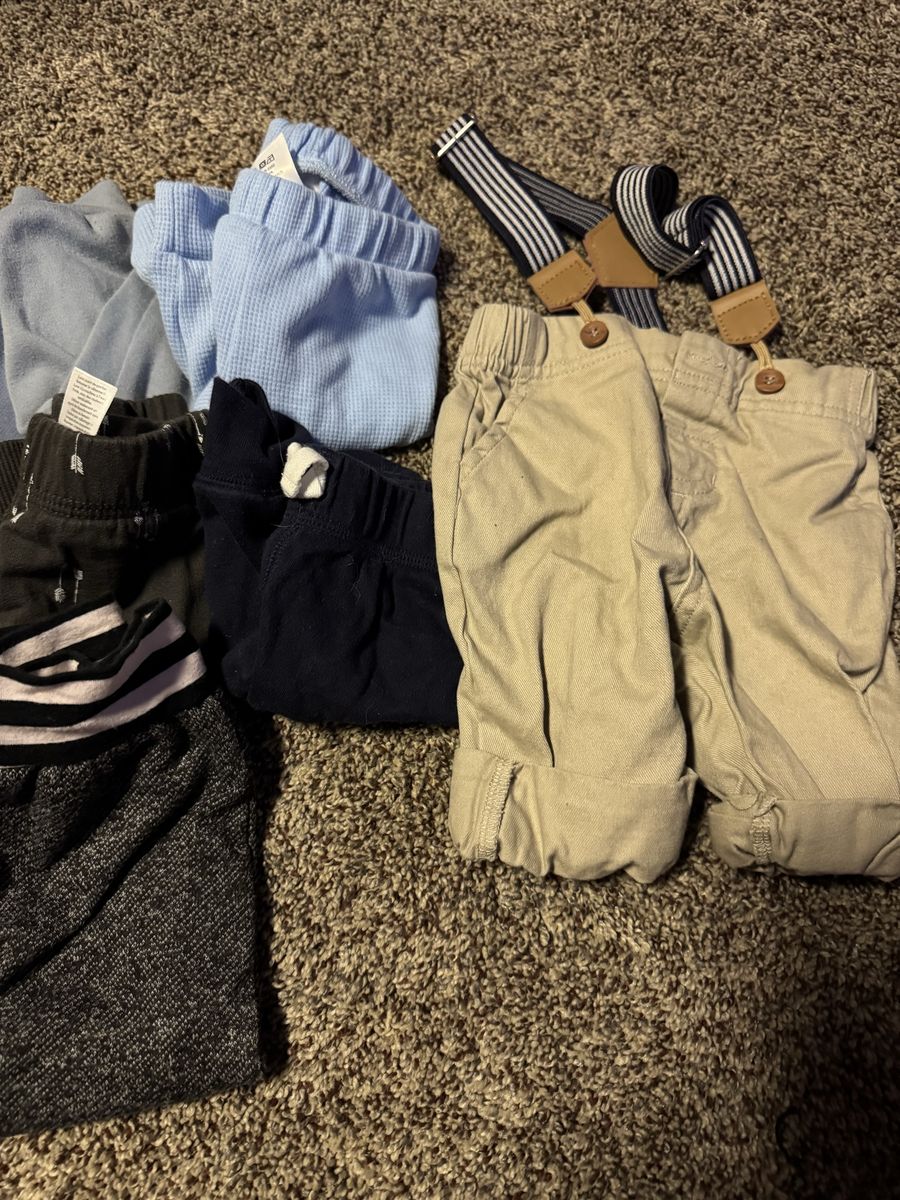 Selling all together there is a couple new born the rest are 0-3 and 3 months there is a few 6 months and3-6. Worn never or one time ( 25 pjs) (1complete set) (3 rompers) (15 onesies) (4jackets) (1 nice button up) (10 pants) (overalls with pants) CASH ONLY