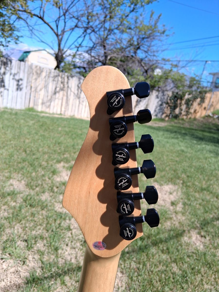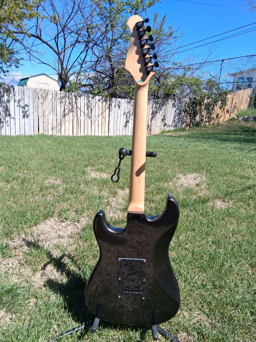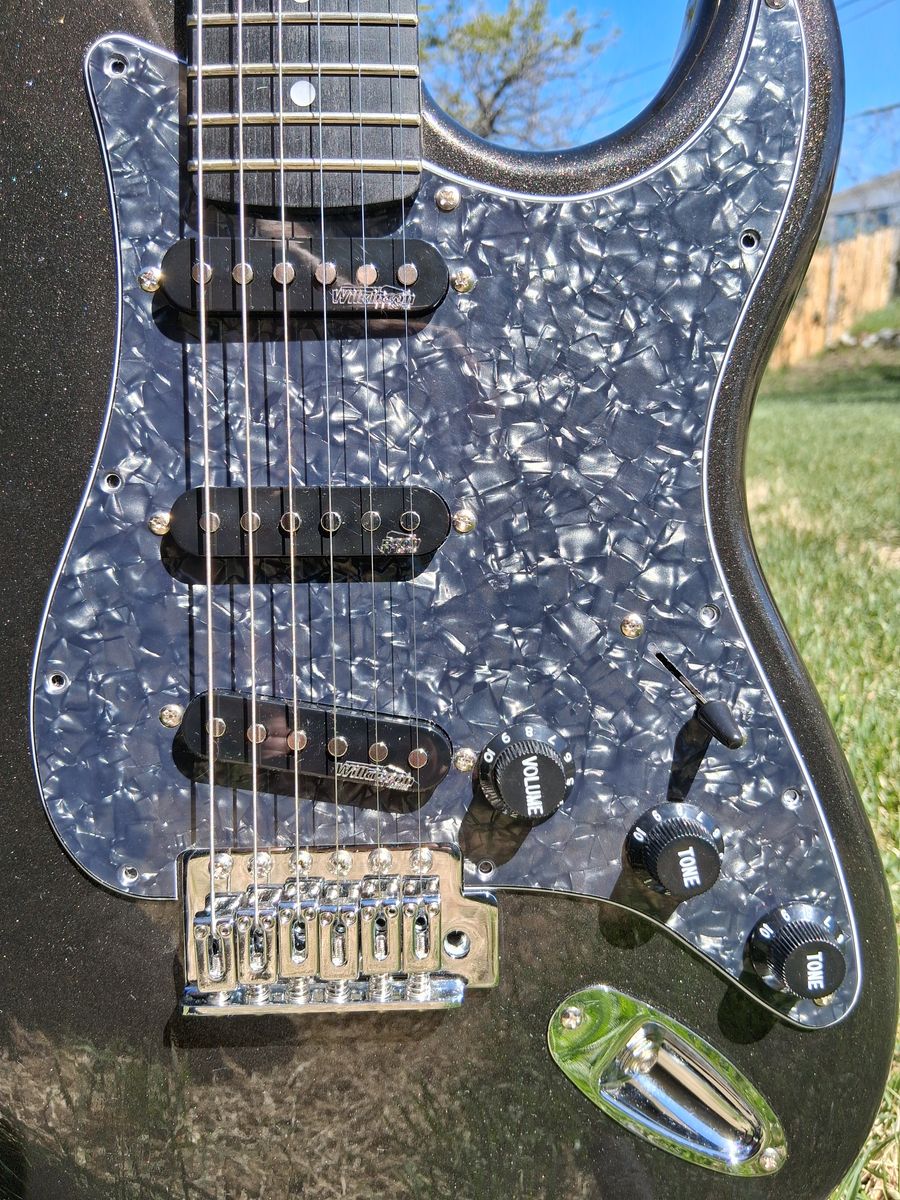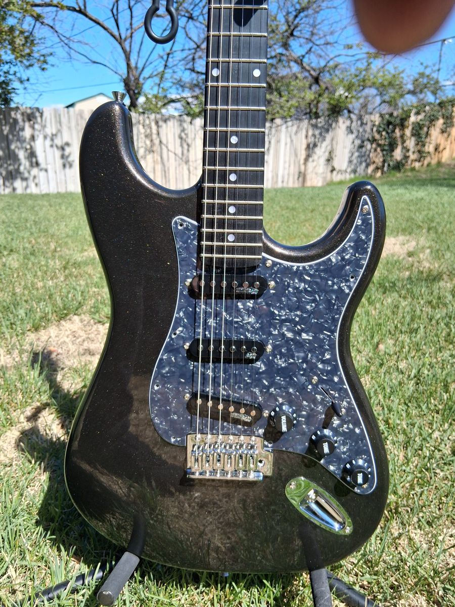 Metallic Black, Changed the pick guard from white to this pearl one, it's missing a few screws on on the pick guard. FCFS Text Reed 801-347-7466