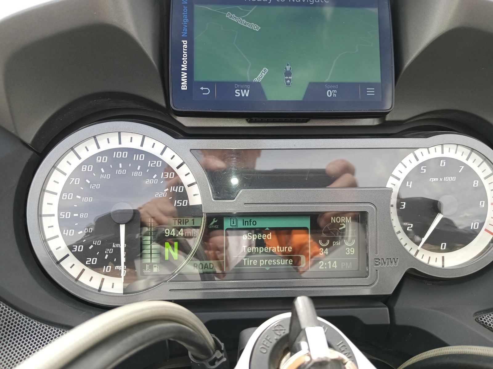 Zelle2014 was the first year for this air/liquid cooled twin. This bike has Automatic Stability Control (ASC), Riding Mode Pro (for Rain or Road), with optional Dynamic Mode that includes Hill Start Control. This bike is equiped with a factory Garmin GPS unit, FM and Weather Band radio, and bluetooth. It has factory saddle bags and touring trunk. Traction control and ABS brakes are all standard. It also has Dynamic ESA or Electronic Suspension Adjustment. New, adjustable windshield for even better wind and weather protection. New headlight concept with optional LED Corona Rings. Multifunctional instrument cluster with large TFT color display. BMW Motorrad Pro onboard computer offering a wide range of information. Innovative audio controls. The handgrips and seat are heated and for safety there is TPMS or Tire Pressure Monitoring System. And oh yes, it has cruise control. Lastly it has a dual accessory socket for your heated vest or jacket or to charge any of your electronics. The bike is Ebony Metallic and has less than 19,500 miles! The battery was replaced in December and there is a battery tender installed. Saddle bag liners also came with this model. And lastly, Garmin replaced the Navigator VI GPS with a brand new unit last year due to problems they found with the touch screen.