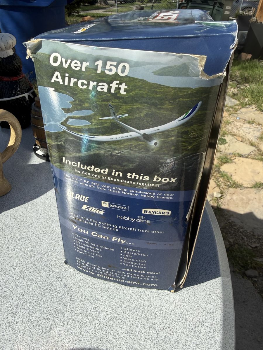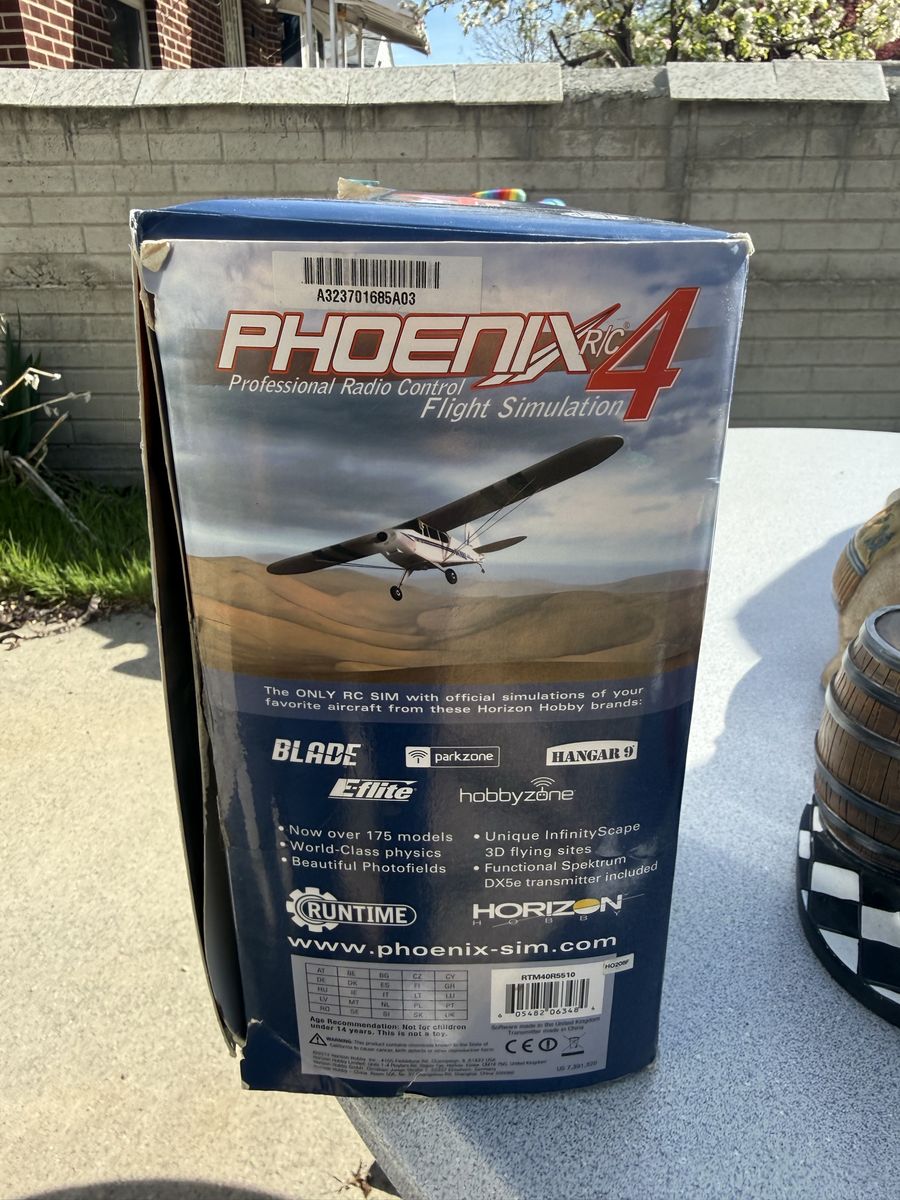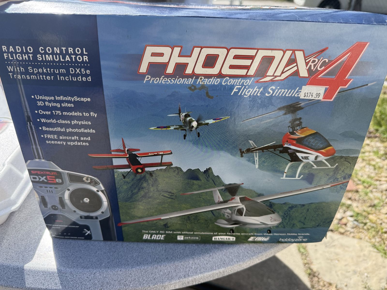 ZellePhoenix R/C Pro Simulator V4.0, a radio control flight simulator packaged with a Spektrum DX5e transmitter.