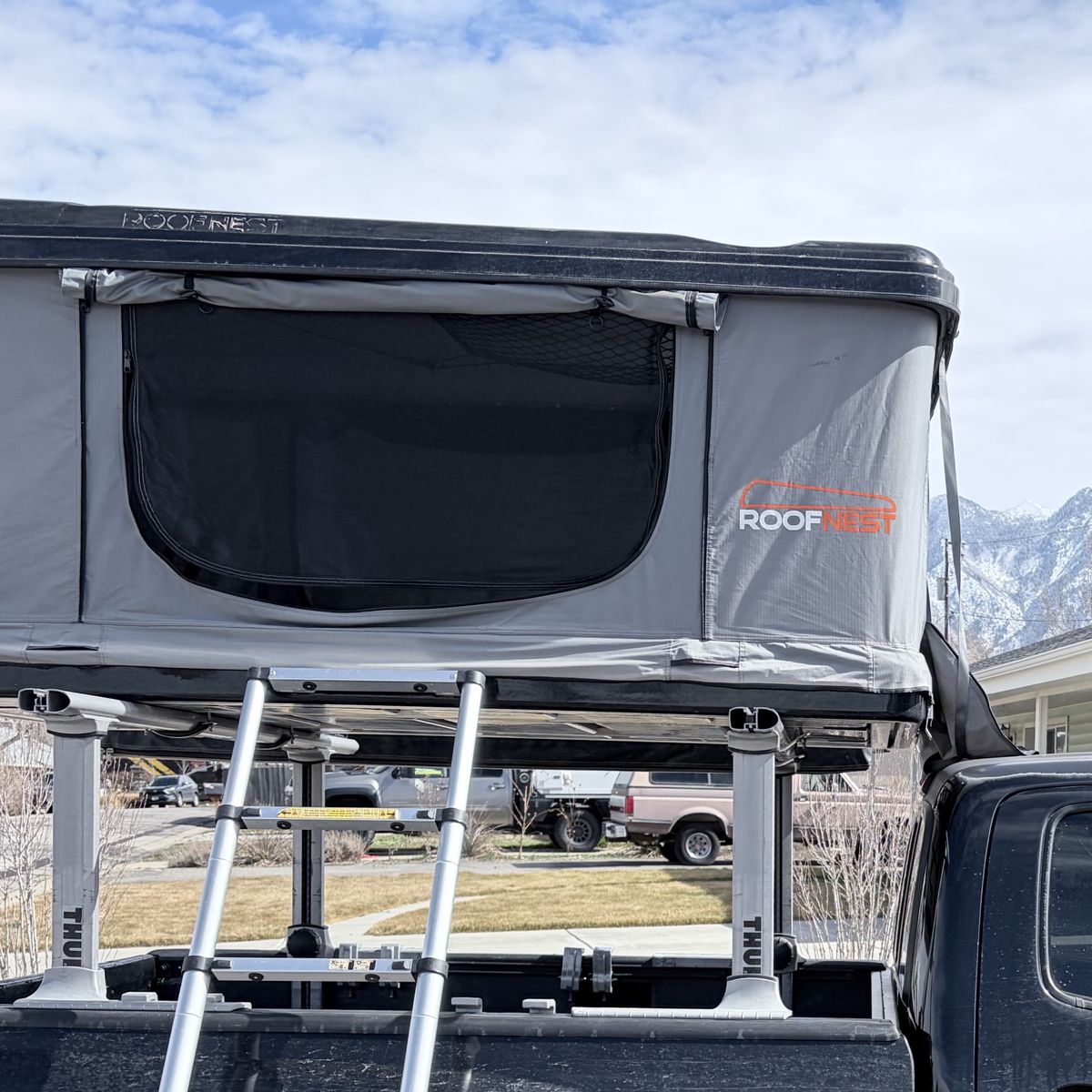 Awesome tent for all the summer adventuring you can get your schedule to allow. Sleeps two adults and a toddler really well! Thule bars are very adjustable and it comes with the awning as well. Let me know if you have any questions this was over $3,500 new