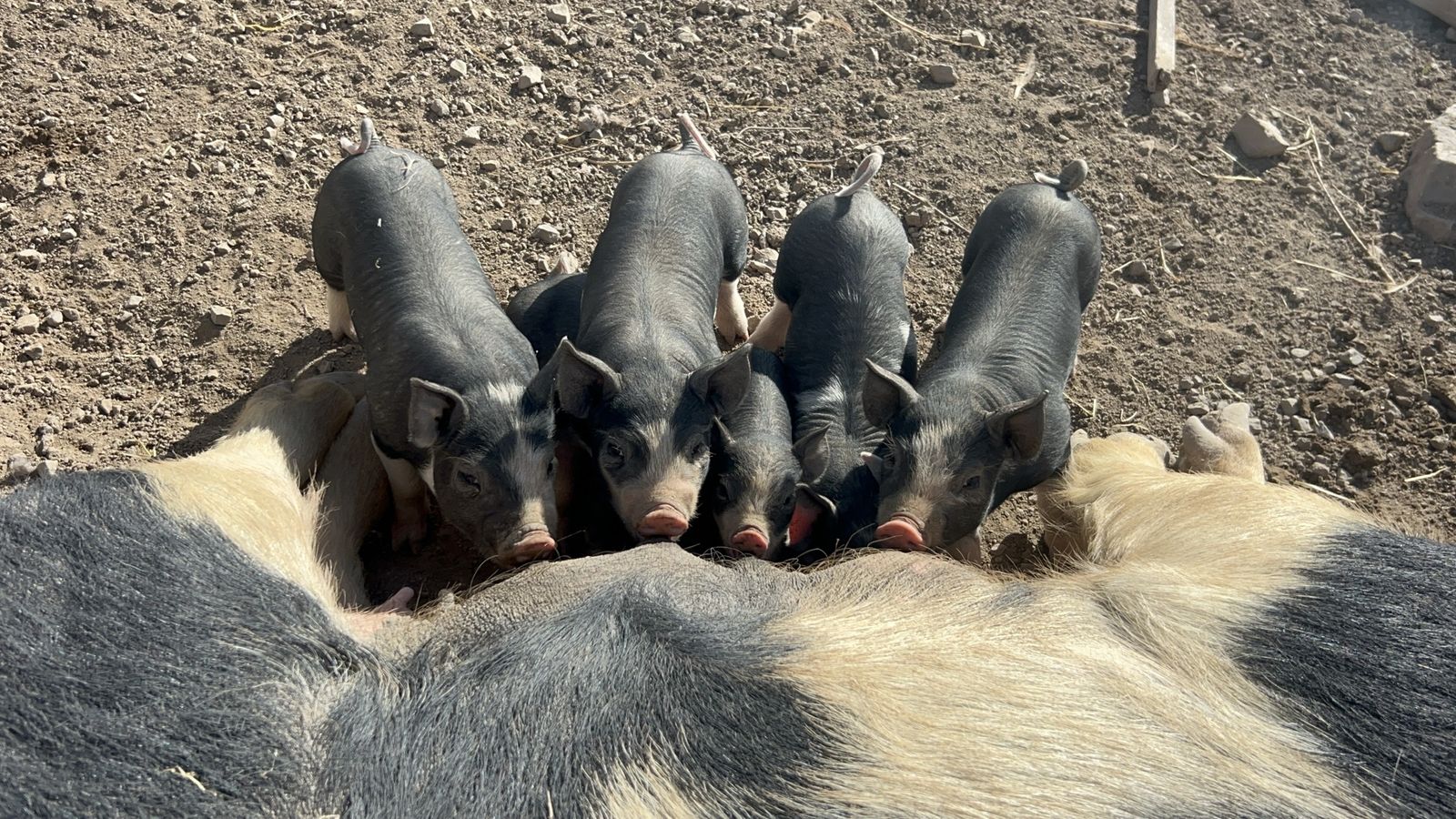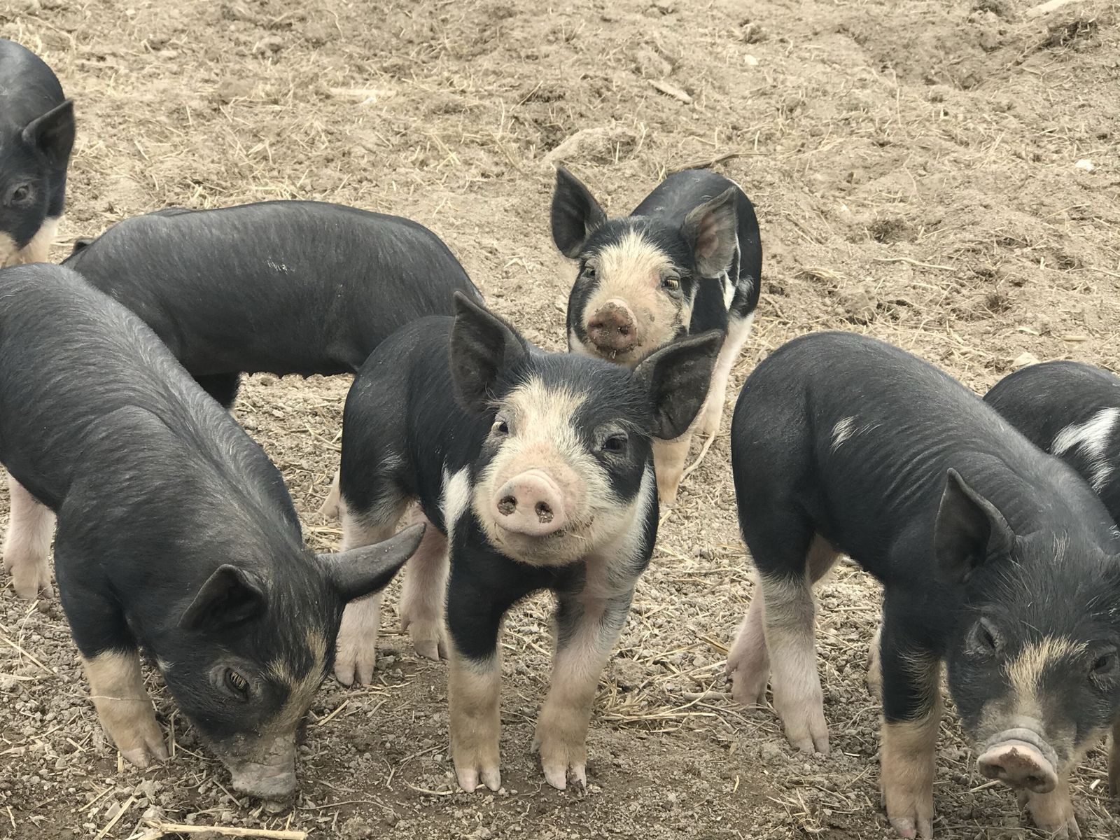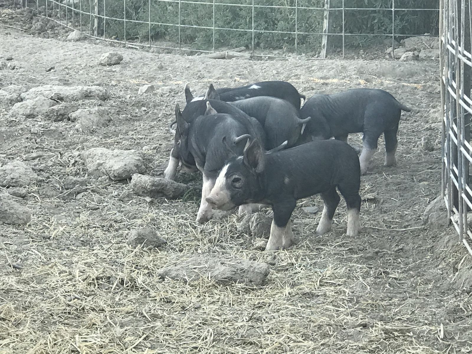 Eight week old barrow Berkshire piglets weaned from their mamas and castrated a week ago. These boys are ready to go home and grow.