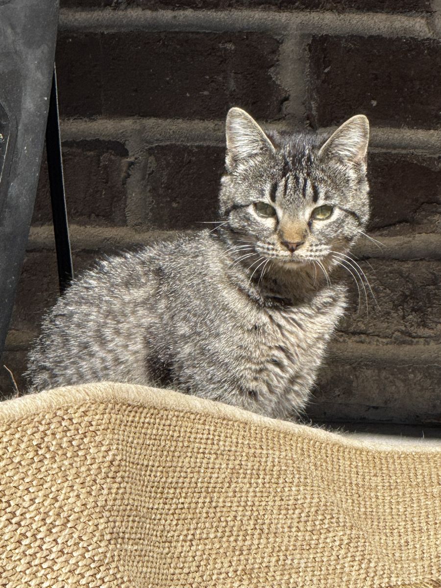 We have two kittens who appeared on our doorsteps a month ago. One has bright green eyes and the other has bright blue eyes. We took them in and cared for them. We litter box trained them. They are around children and dogs and other cats. I am pregnant and my parents are unable to care for them.