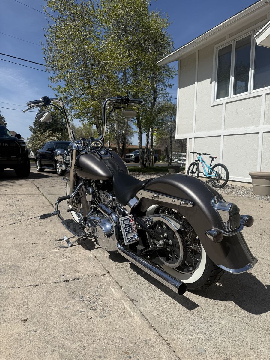 VenmoPerfect running and excellent condition Harley Davidson Softail Deluxe. 11,169 miles. 96 cubic inch motor. 6 speed transmission. No leaks. Well maintained. Carlini gangster apes handle bars. Le Pera bare bones seat. Vance and Hines true dual exhaust. Newer tires. Title in hand. $8,999 Josh 435-760-two-five-two-seven