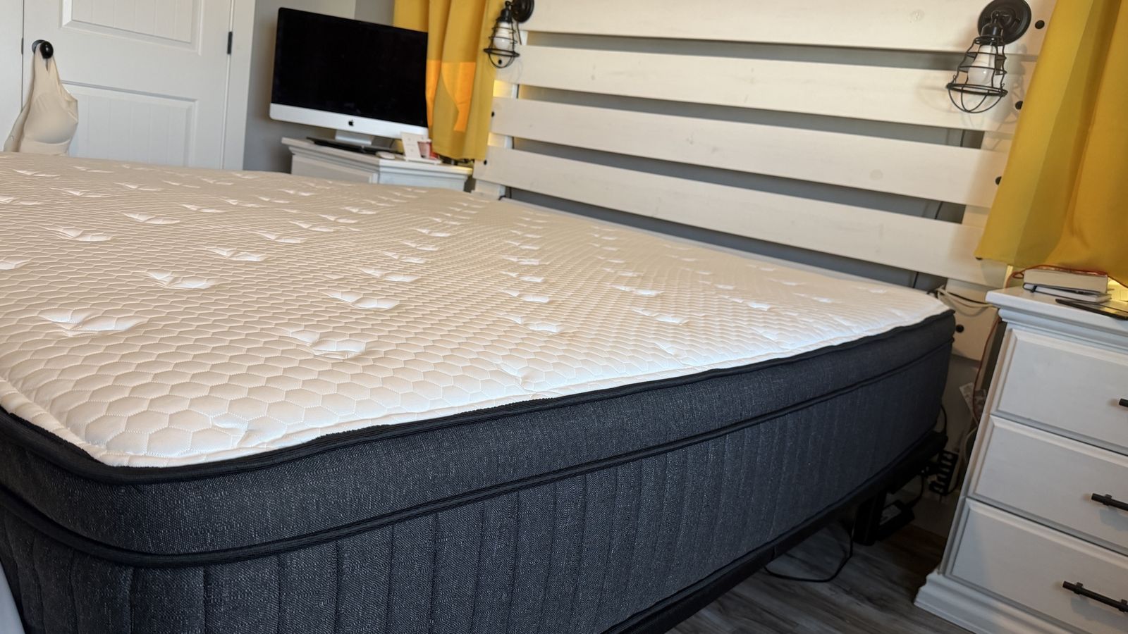 ApplePayWe purchased this mattress in July for $2300. I absolutely love this mattress. It’s the first mattress I’ve ever been able to sleep on my back with without my lower back hurting. It’s a hybrid with memory foam top and traditional coil springs beneath. We opted for the extra glaciotex cooling layer at the top, making this a 14.5 inch deep mattress. We are only selling it because my wife wants to go back to a full memory foam mattress. While I hate to see it go. I’d rather have a happy wife.