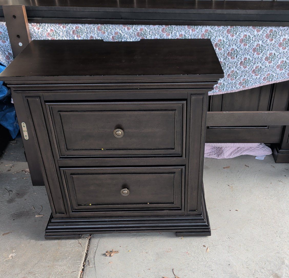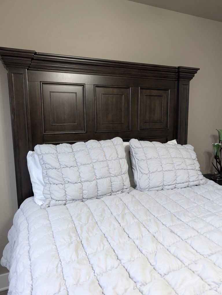 Venmolike new, beautiful bedroom set. large headboard and tailboards. Box Spring and mattress. comes with a side table too. Dark wood, no damage. literally used twice. Was in a spare bedroom, now moving.