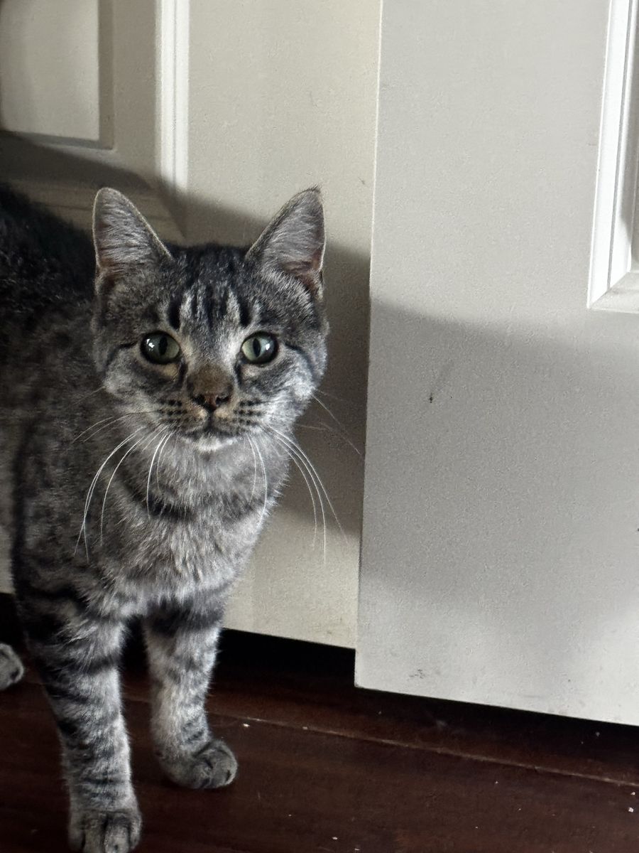 About two months ago this kitten along with her sister showed up at our front door. We live in rural Utah County and often have cats abandoned here. I am looking for a home for this kitten in her sister. They do not need to go together, but it would be nice. I am pregnant and unable to take care of them, but we have litter trained them. They are outdoor indoor cats and are around dogs and children and do great! if you’re looking for a mouse, sir they’re also great at that too.