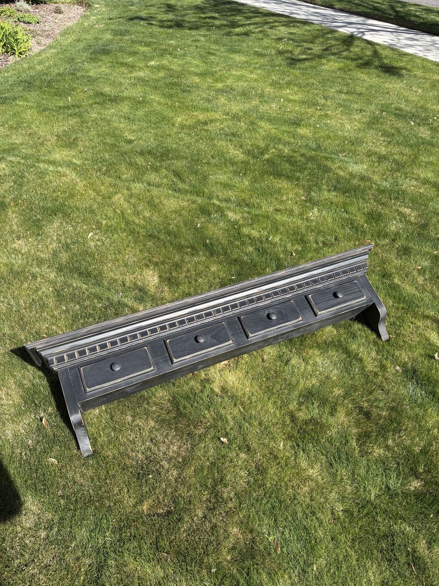 VenmoBlack wooden wall shelf in great condition. Shelf is solid and sturdy and has a slight distressed look. Works great as a floating shelf, entryway shelf, or decorative display piece for photos, plants, or decor.