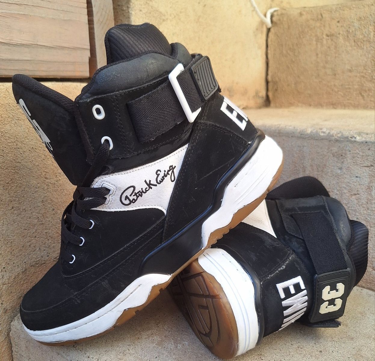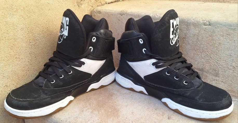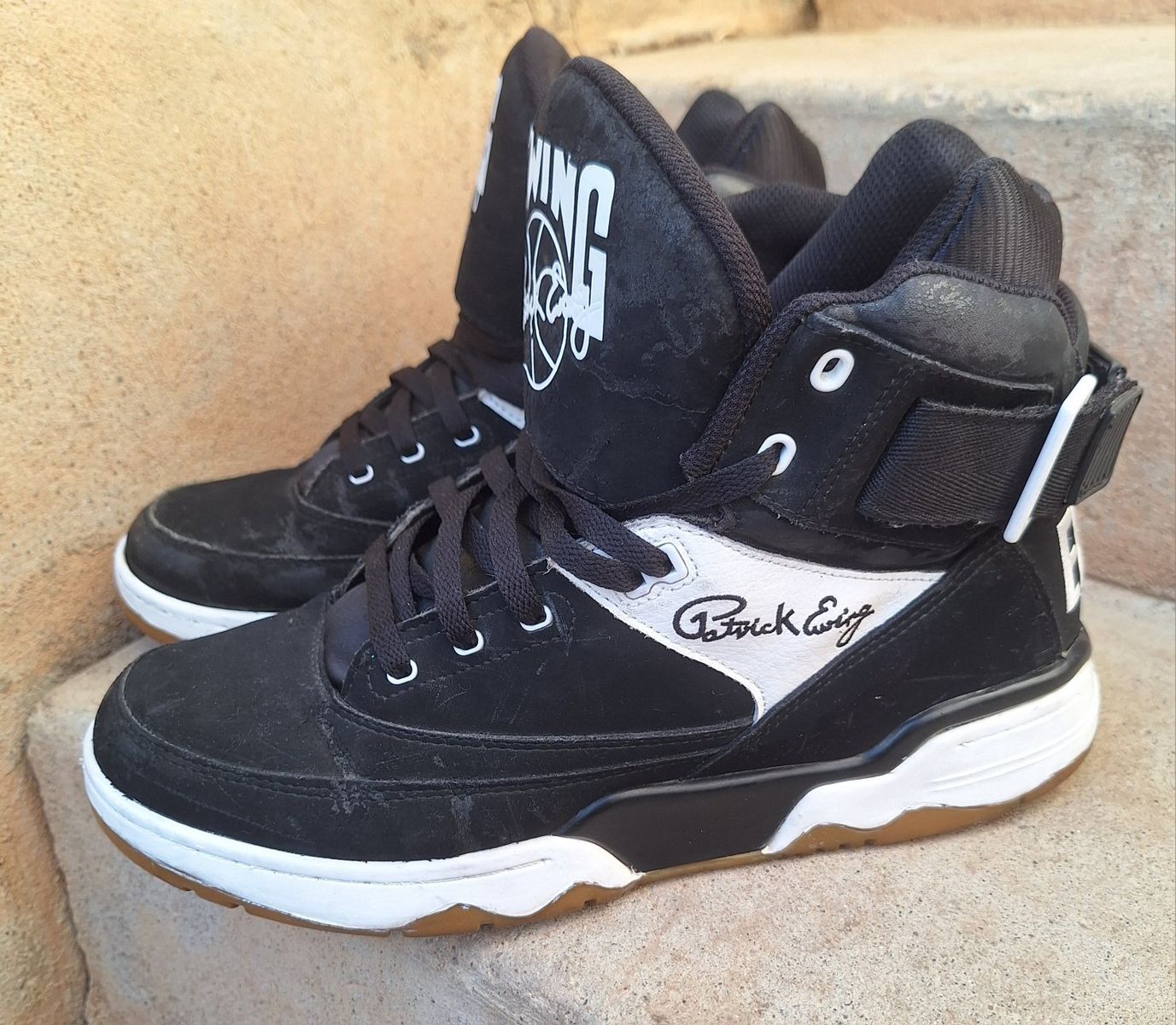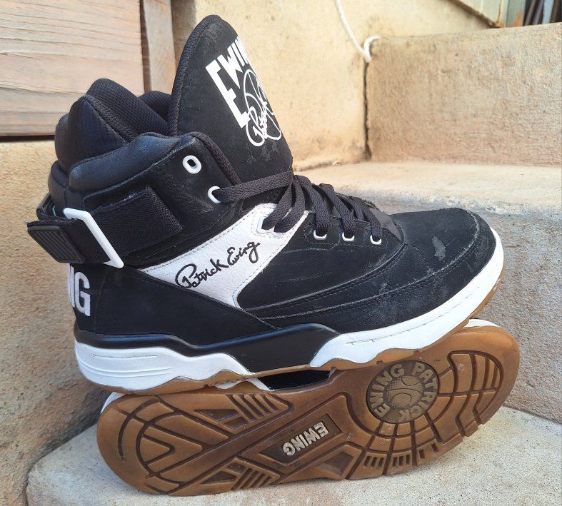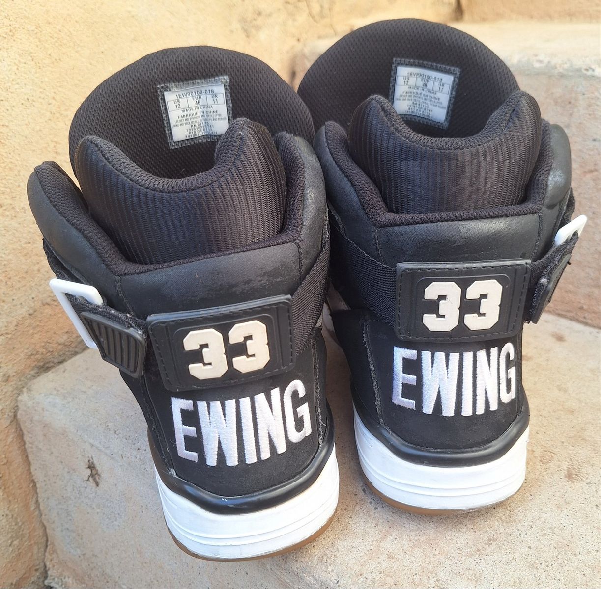 CashAppAwesome pair of Mens Black Suede Ewings US size 12. Still a lot of life left in thess guys! Super comfortable pair of shoes and lots of padding made them a great pair of shoes I enjoyed. Somw wear on the front noses, but has new insoles in them. Comes from a clean smoke and pet free environment. Please see photos for closer details, thanks for looking!