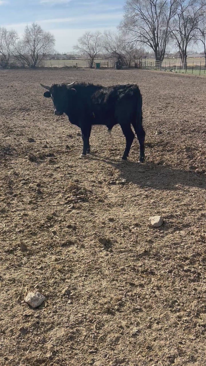 Coming 2 year old black Corriente bull. Runs straight and medium speed every time, takes the corner well. Rope him and throw him out with the ladies. Dewormed, vaccinated and ready to go!
