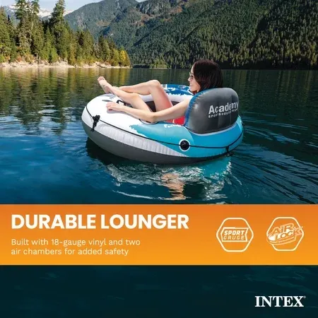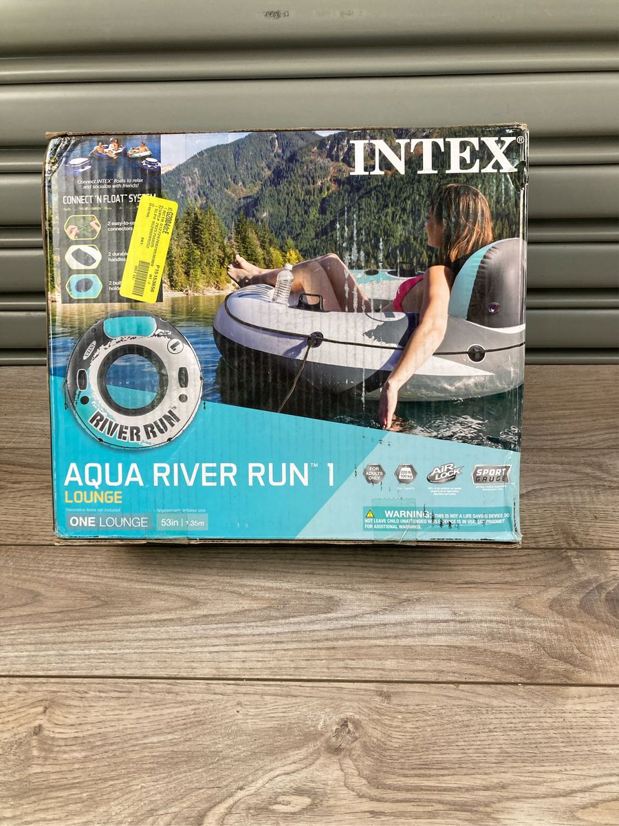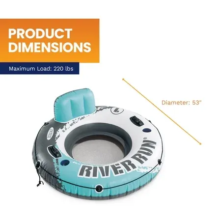 Have fun floating in the pool or at the lake with the Intex Aqua River Run I 2 Air Chambers 2 Built-in Cup Holders Easy-to-use Quick Connects All-around grab rope Mesh bottom Built-in backrest. 220 lb max weight limit.