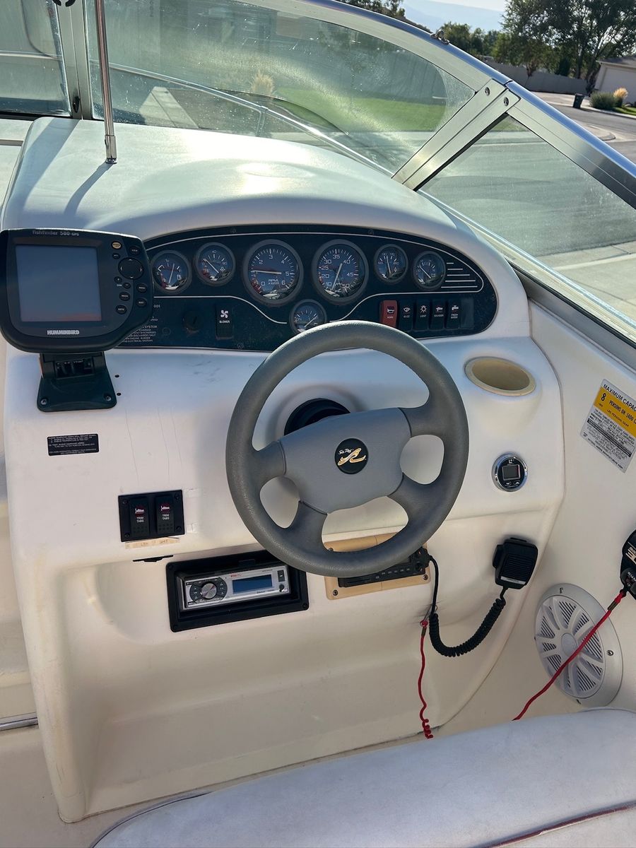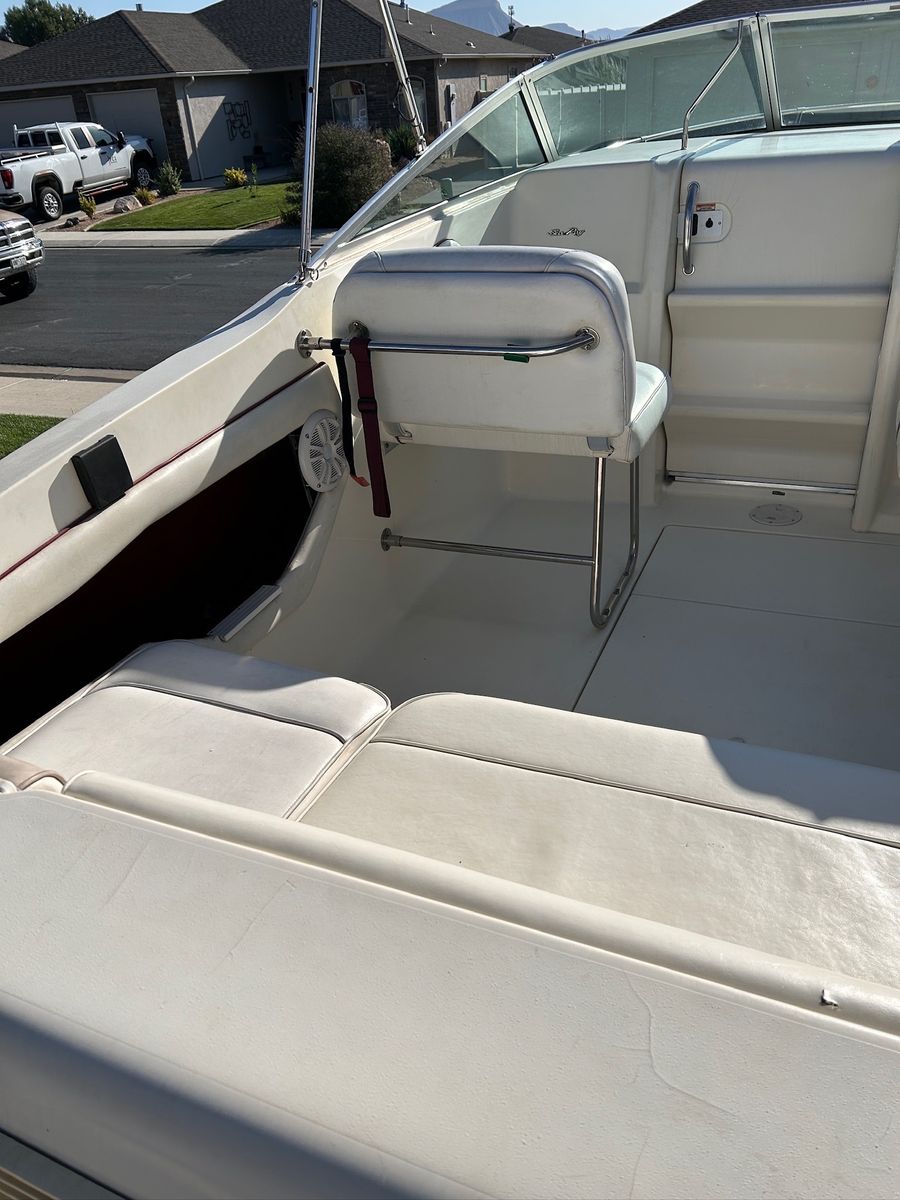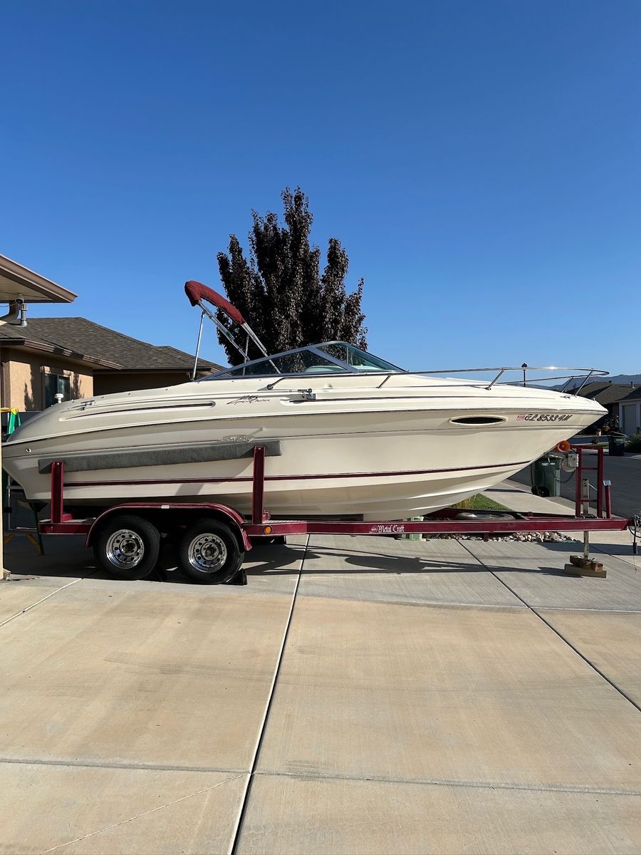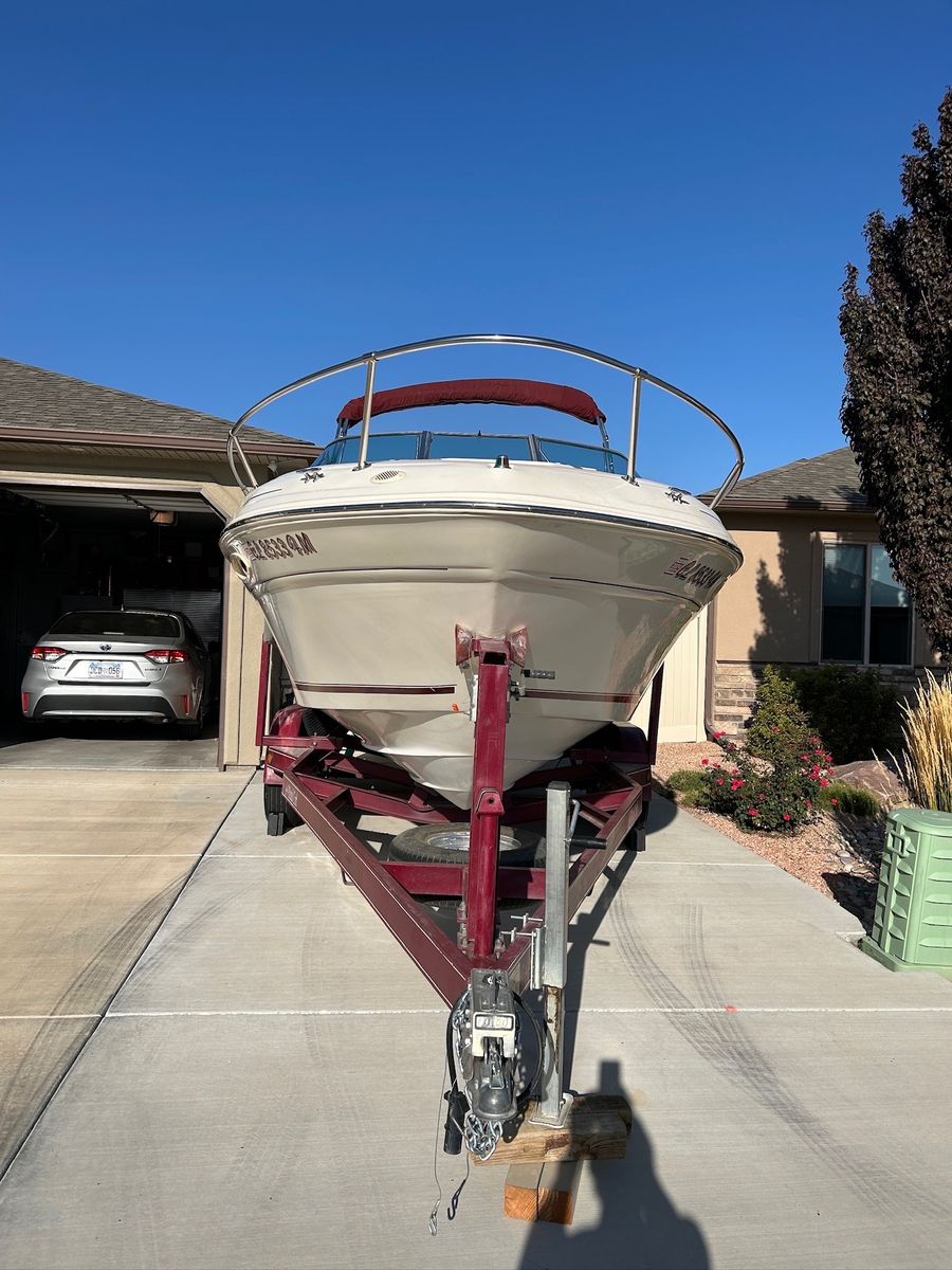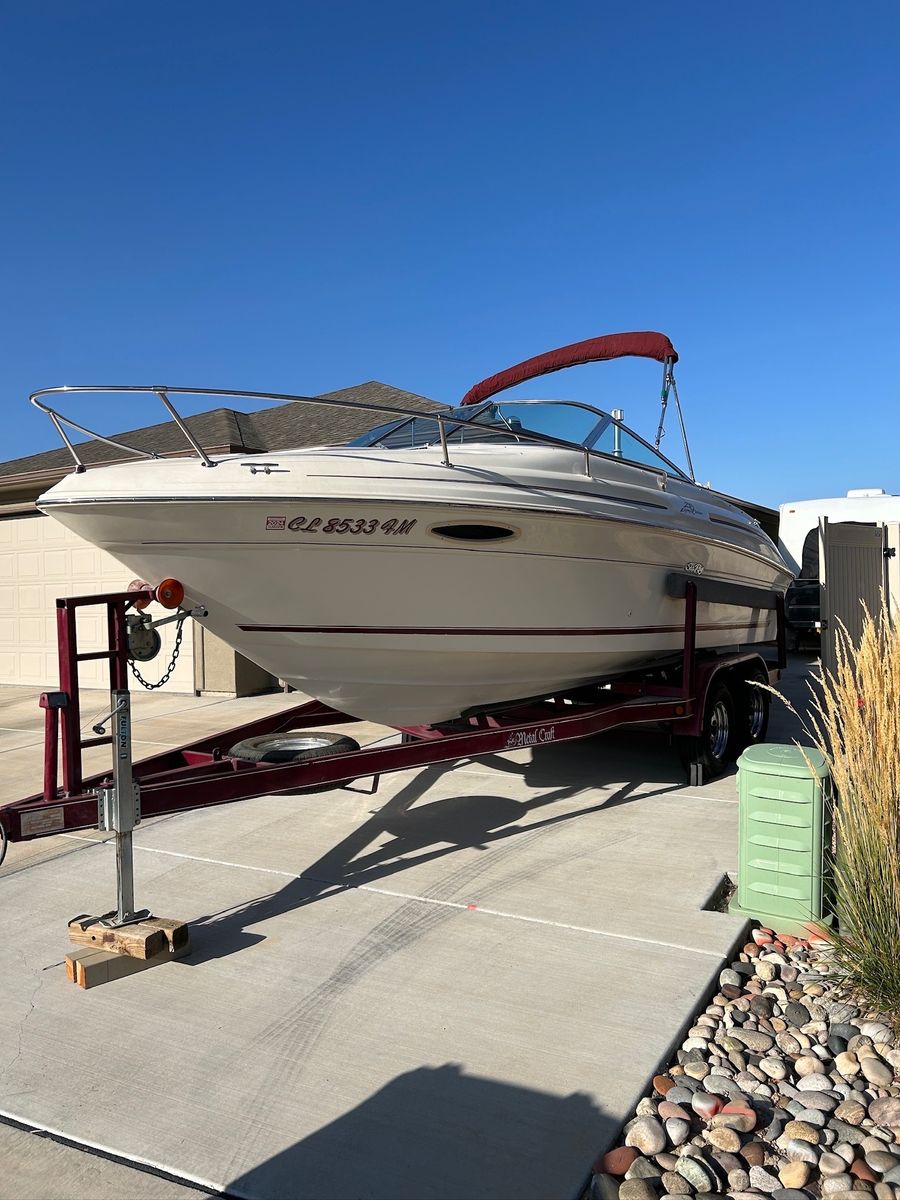 The 1997 Sea Ray 215 ExpressCruiser is a popular cuddy cab model, known for its performance, comfort, and versatility. The 5.7L 250hp MerCruiser stern drive provides plenty of power for cruising and water sports. The trim tabs are a nice feature for improving handling and stability. The GPS/fish finder combo is perfect for navigating and finding the best fishing spots. The Boss sound system is sure to provide plenty of entertainment for you and your passengers. Having a spare prop, 3 anchors, docking ropes, and bumpers is great for being prepared on the water. The seating capacity for 8 people makes it an excellent choice for family outings or entertaining friends. Sits on Metalcraft trailer.. Always maintained at 970marine in Grand Junction. Must see to appreciate, this is an amazing boat due to age I’m no longer able to use it. Located in Grand Junction Colorado