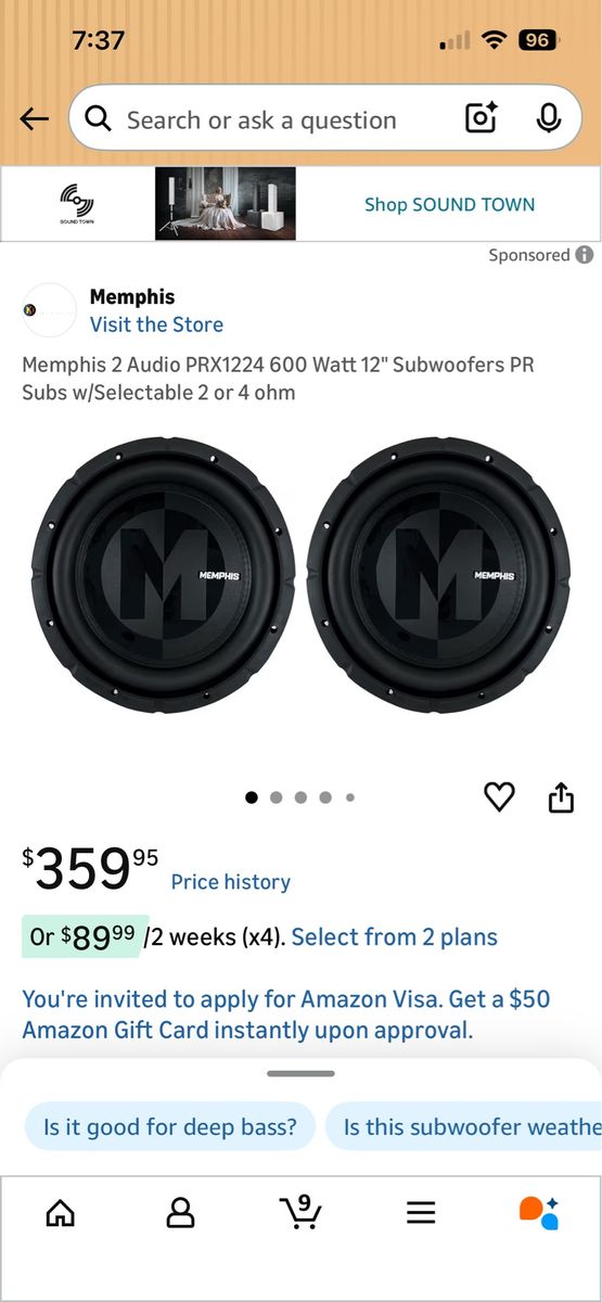 CashAppMemphis 12 inch subwoofers PRX 1224. The subwoofers are $359 with tax over $400. The speaker box is $189 so basically a total of over $600 with tax willing to let go for 250 cash this can go from a 4ohm to a 2ohm the speaker sound really good if you want really good base this is what you need and if you want to buy an amplifier look at my KSL site or ask I got plenty of amplifiers those you would have to buy separately, but I would give you a fair deal if you bought both