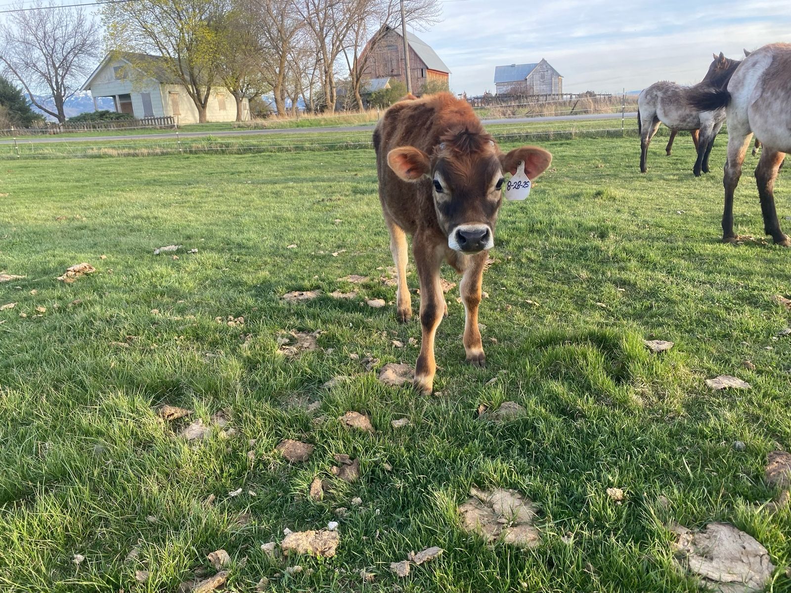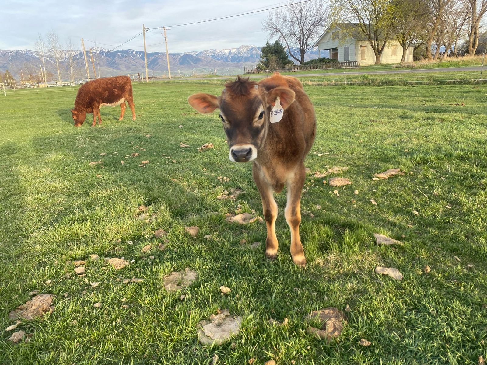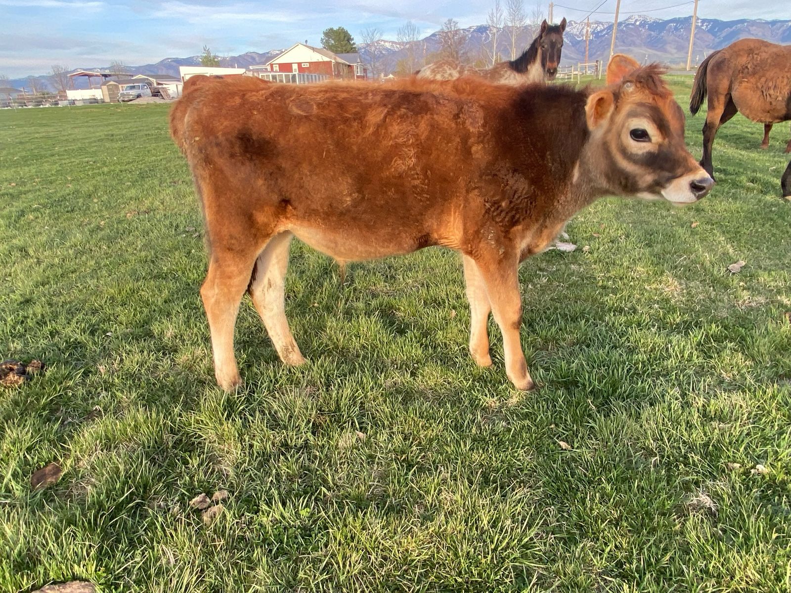 8 month old Jersey steer. Pasture raised, respects fences of all types. Very friendly and easy, and not at all dangerous. Been on pasture. Growing well, and putting on weight nicely. Has been dehorned, and has been elasticated. Has been led with a halter.