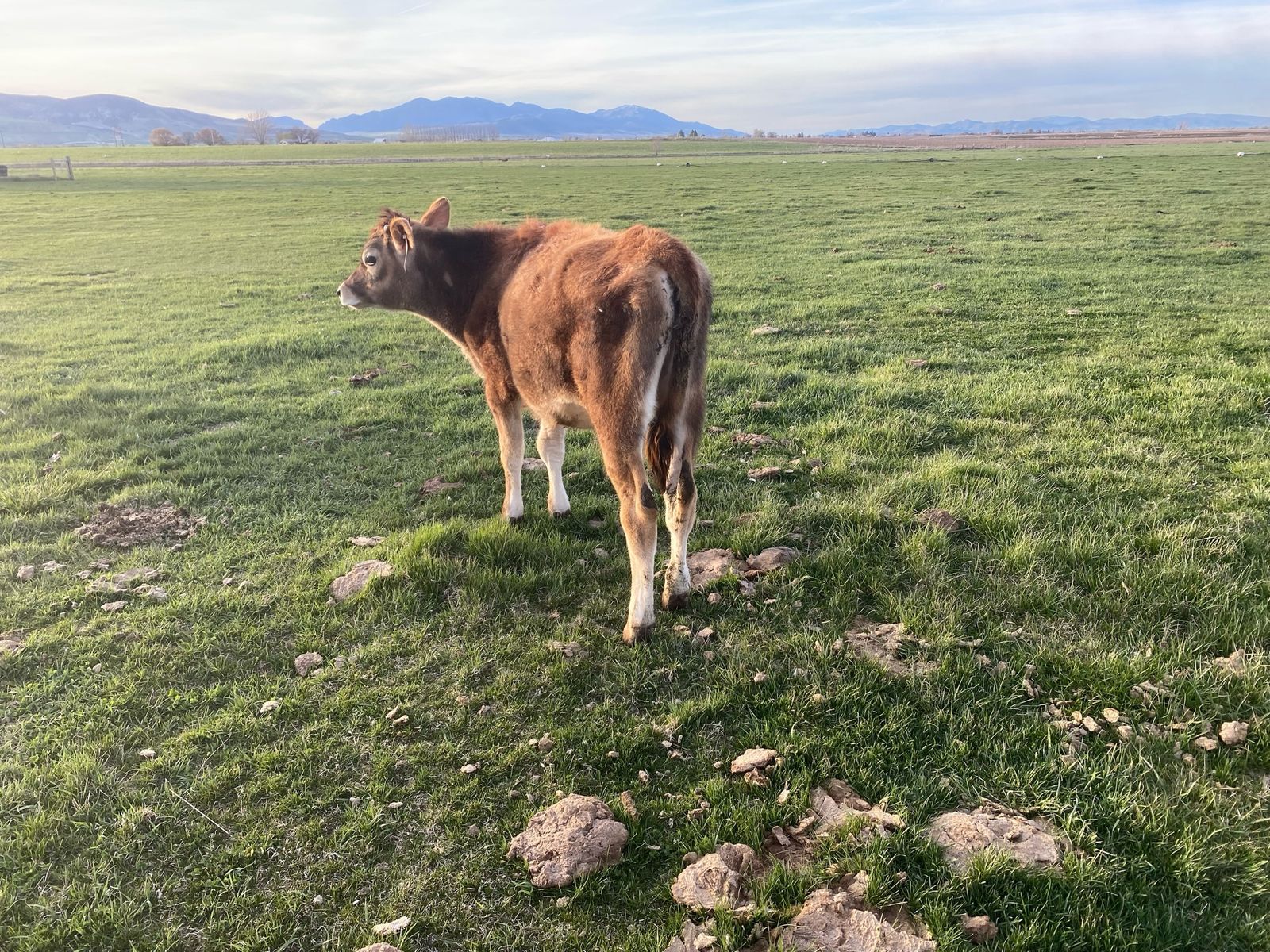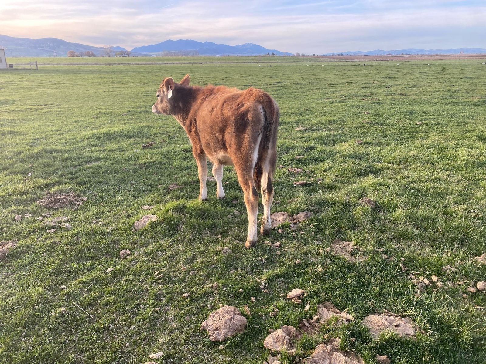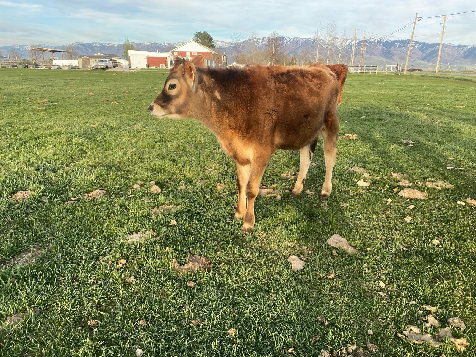 8 month old Jersey steer. Pasture raised, respects fences of all types. Very friendly and easy, and not at all dangerous. Been on pasture. Growing well, and putting on weight nicely. Has been dehorned, and has been elasticated. Has been led with a halter.