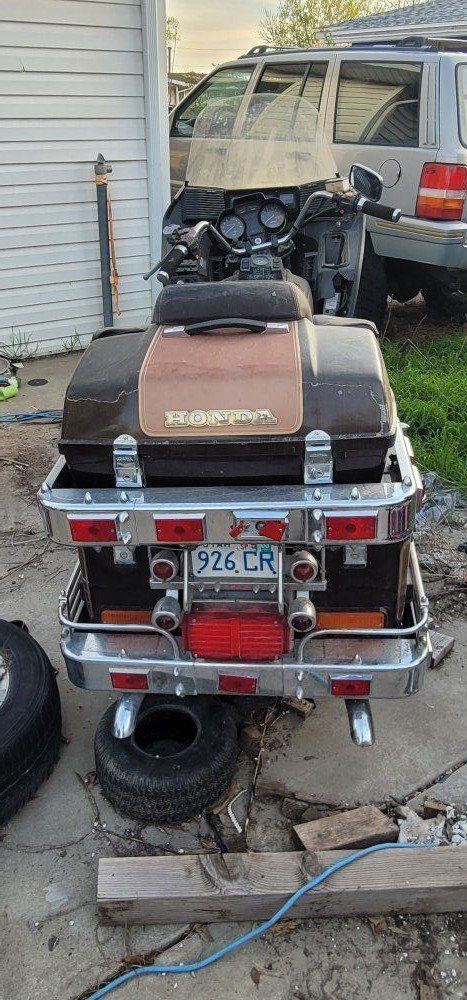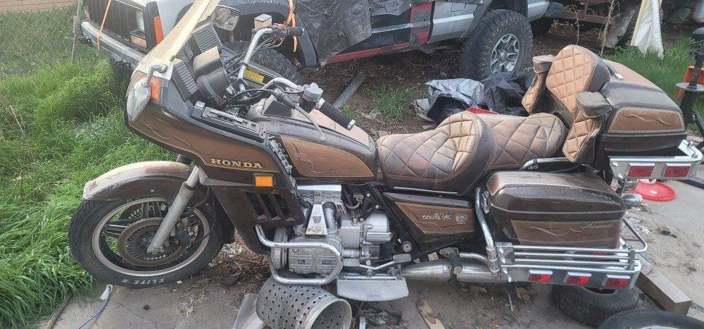 1982 honda goldwing aspencade. the last time it was ridden was 2003 by my great uncle. It has some damage from hitting a dog. shown in pictures. I have had it running but it needs work due to sitting in a garage for 20 years. it's a super cool bike I just don't think I'll ever get around to fixing it up. I don't have a title. text is best obo