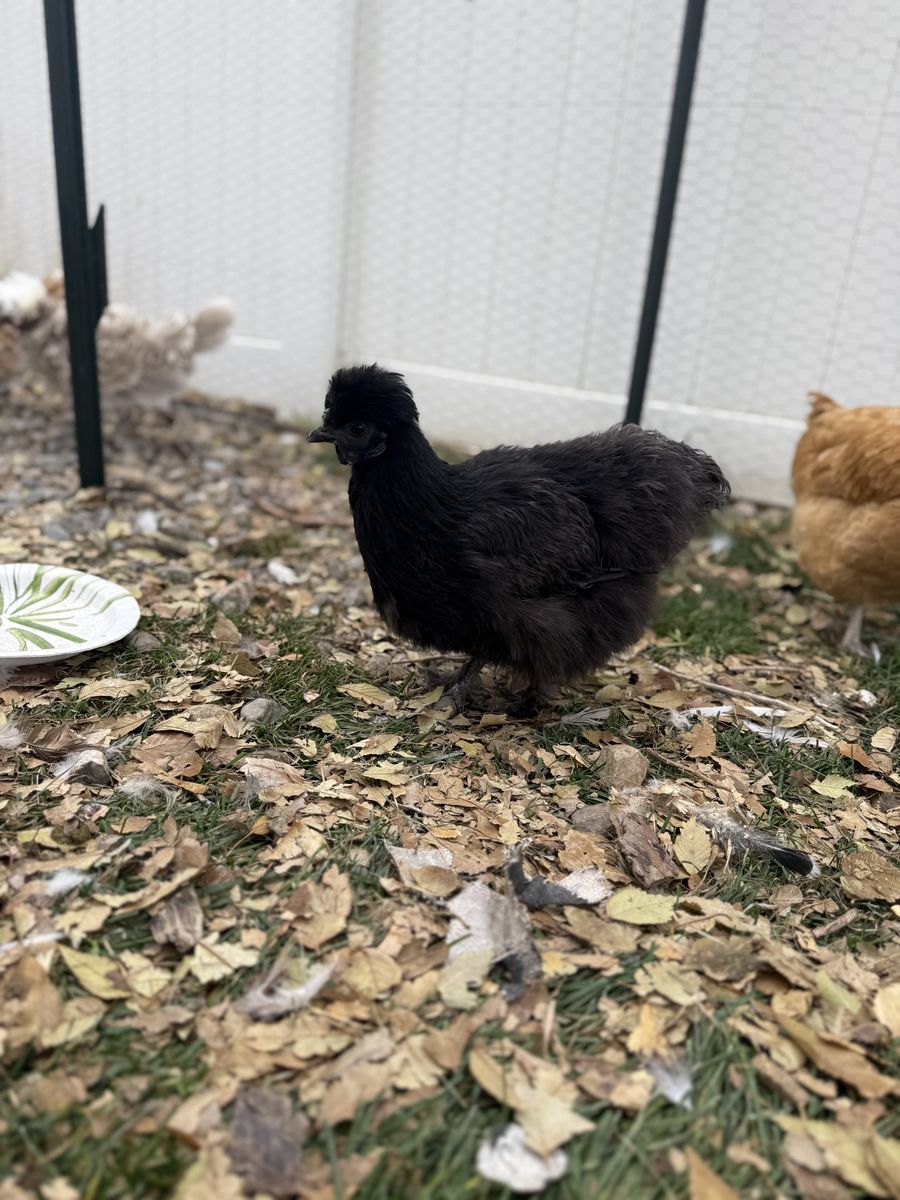 VenmoHatchery quality black silkie hen. About 18 months old lays medium sized eggs. Her eggs are actually larger than your average silkie egg.