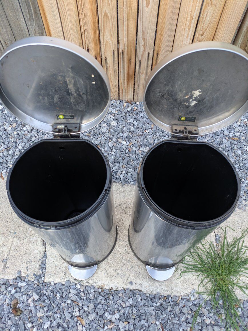 VenmoI am selling two simplehuman trash cans that still work great, but are a little scratched up on the top. (I had two magnets on top that got stuck and had to be lightly sanded off). They fit the standard 13 gallon kitchen trash bag size.