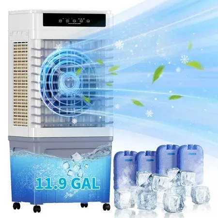 Brand:TABU Color: White Air Flow: 3531 CFM Oscillation: 120° Timing: 1-7 H Noise: ≤ 65 db Water Tank Capacity: 11.9 Gal / 45 L Coverage: 538 Square Feet Product Size: 18.11 x 14.56 x 42.12 inches