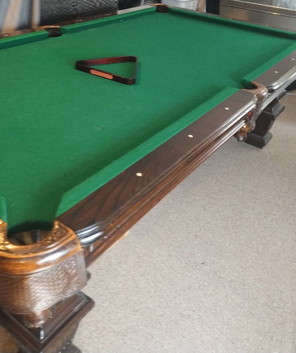 Takes 4-6 people to move it into a large truck. Will need tie-downs. If after 8pm pick up we have 2 Young Men that can help move it to your truck. Comes with accessories and stand, the balls too, seen in picture, and a bag of extra accessories, chalk, etc.