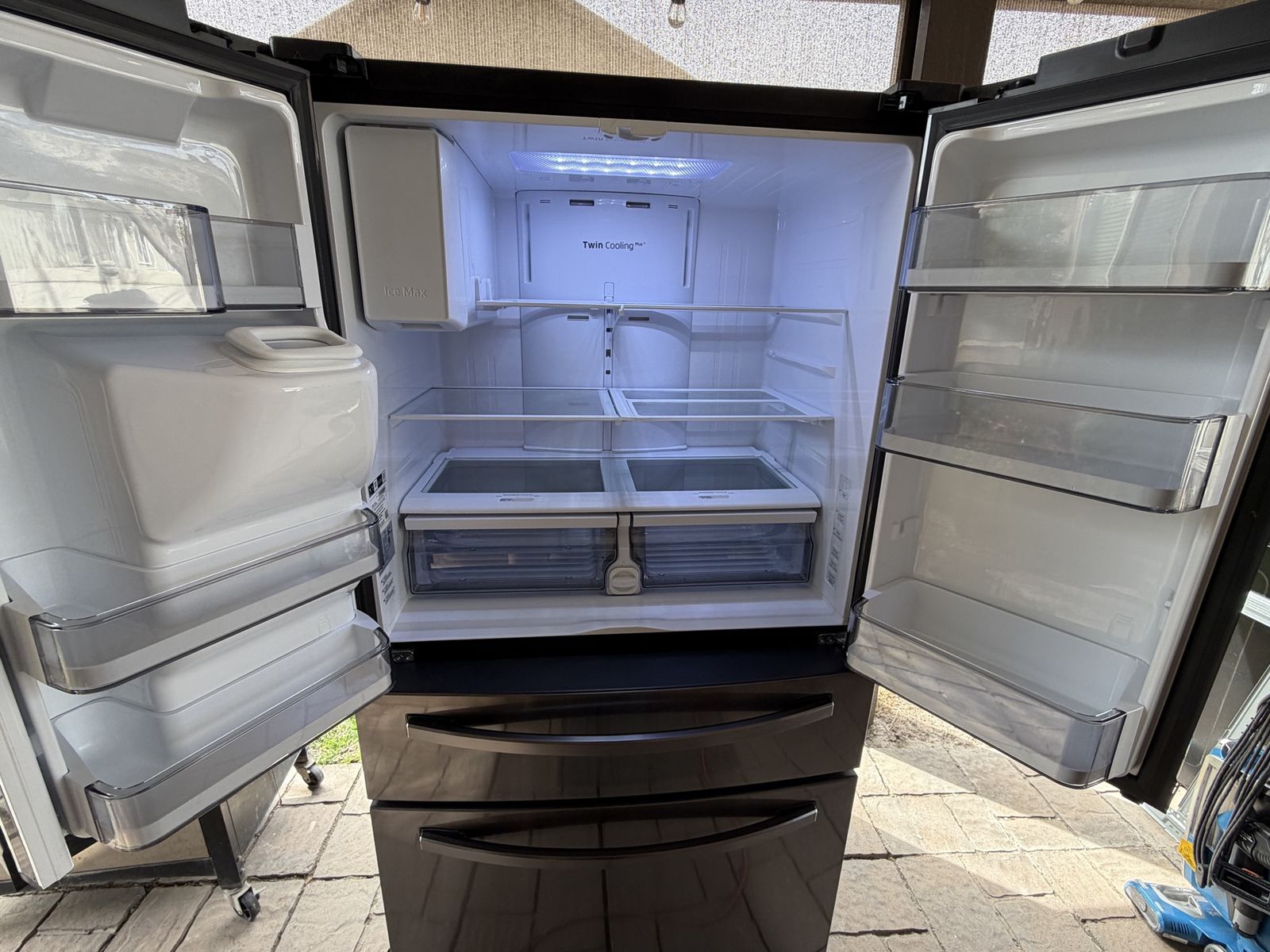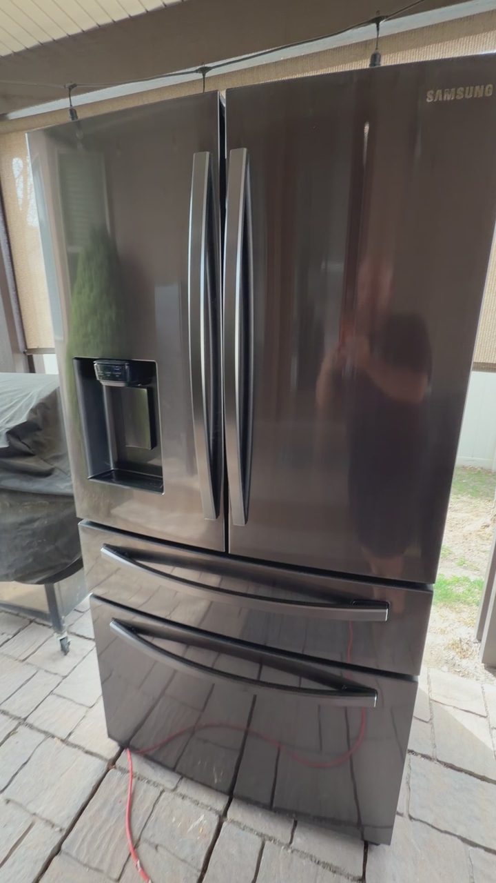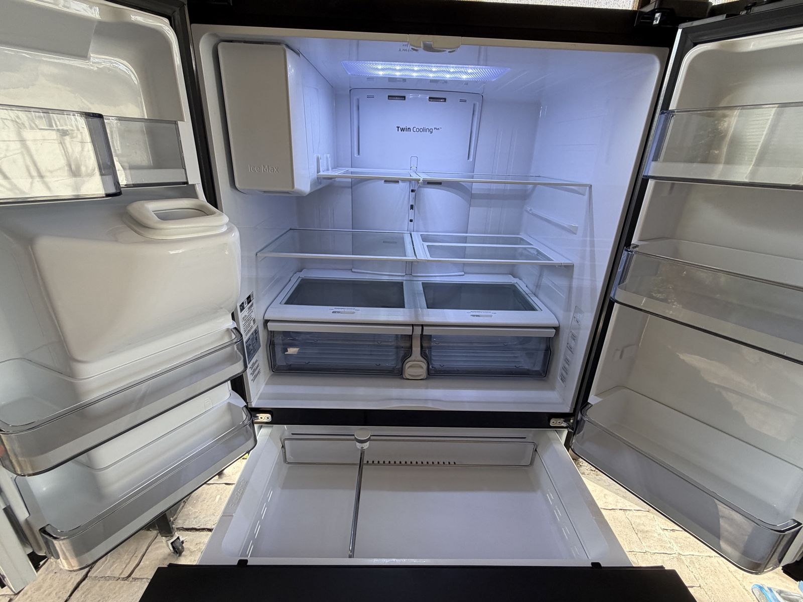 VenmoClean Samsung French door refrigerator. Black stainless steel. Has external ice and water dispenser, super convenient. Bottom freezer for easy access. Features Twin Cooling Plus system. Very spacious inside. Make reasonable offer!