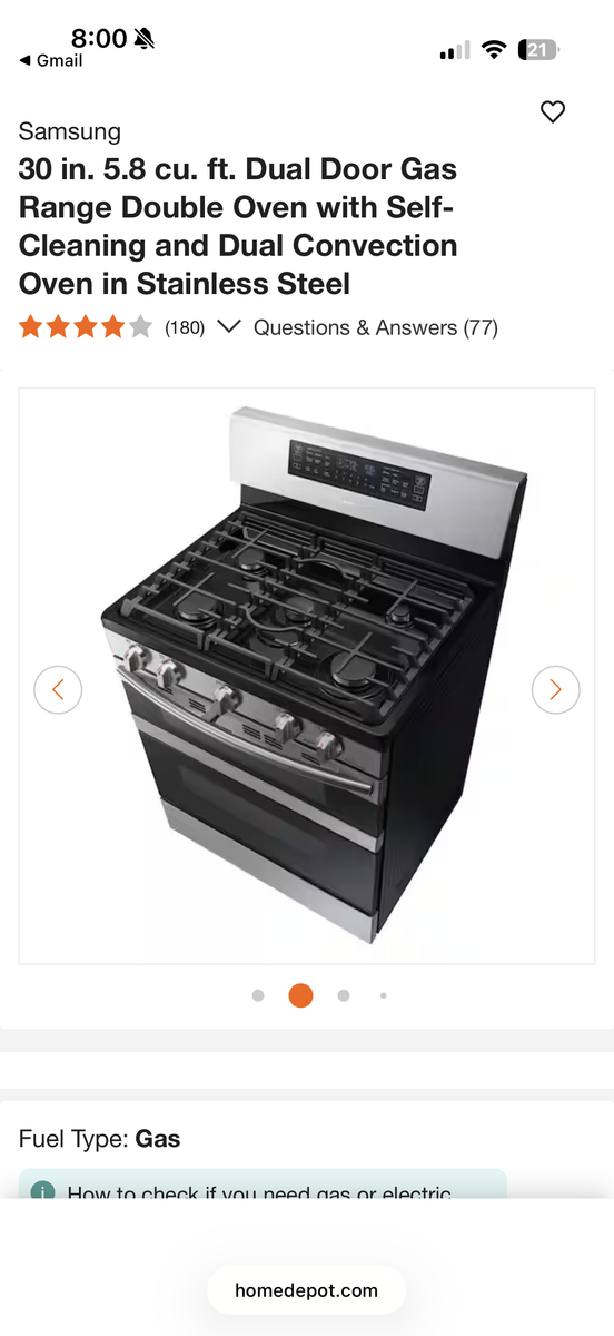 ApplePayBought in 2020 for $1197 and used for year and a half before a full kitchen remodel that switched to cooktop and wall ovens. This is in very good shape and cooks well. Below is description from Home Depot.