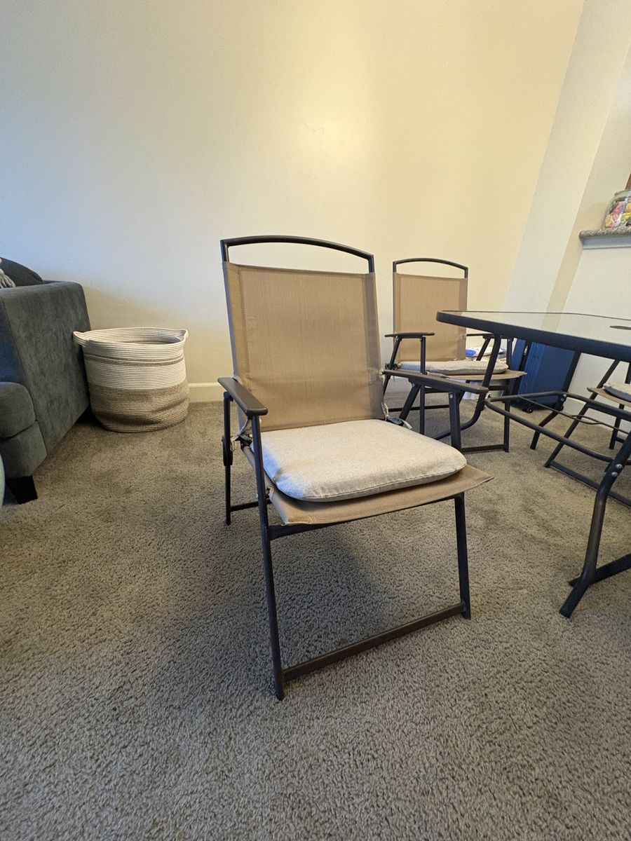 ZelleWilling to negotiate price Outdoor table with cushions and 4 chairs: $150 (suitable for beach umbrella)