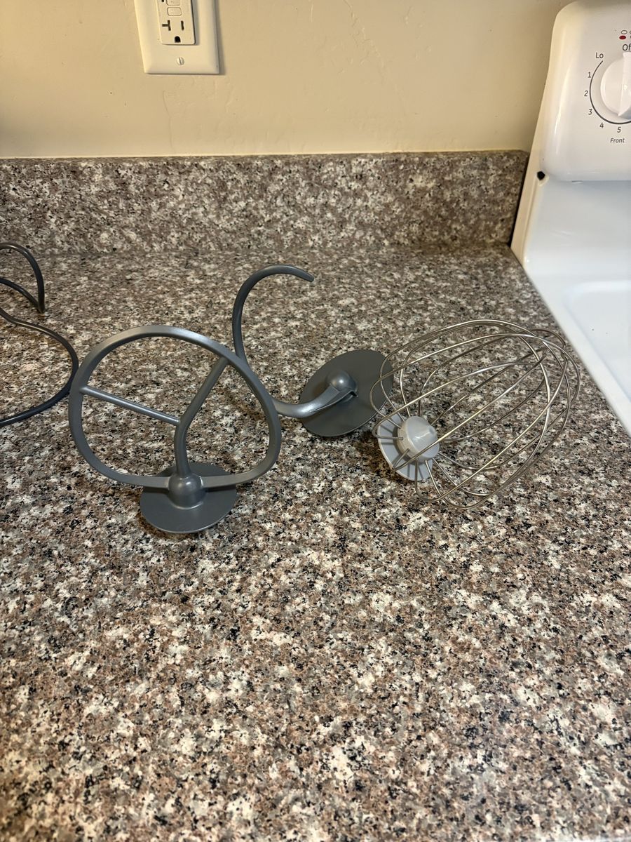 ZelleBeautiful stand mixer: $50 (bowl, 3 hooks and pouring shield just for parts, doesn't work anymore but only used a few times)