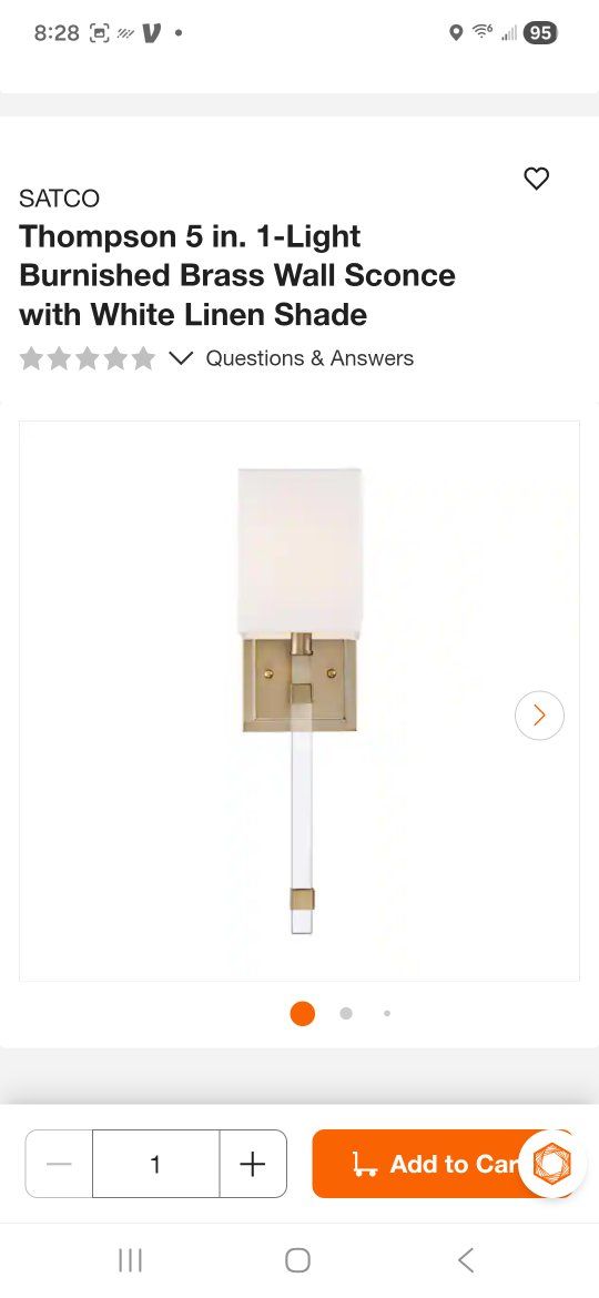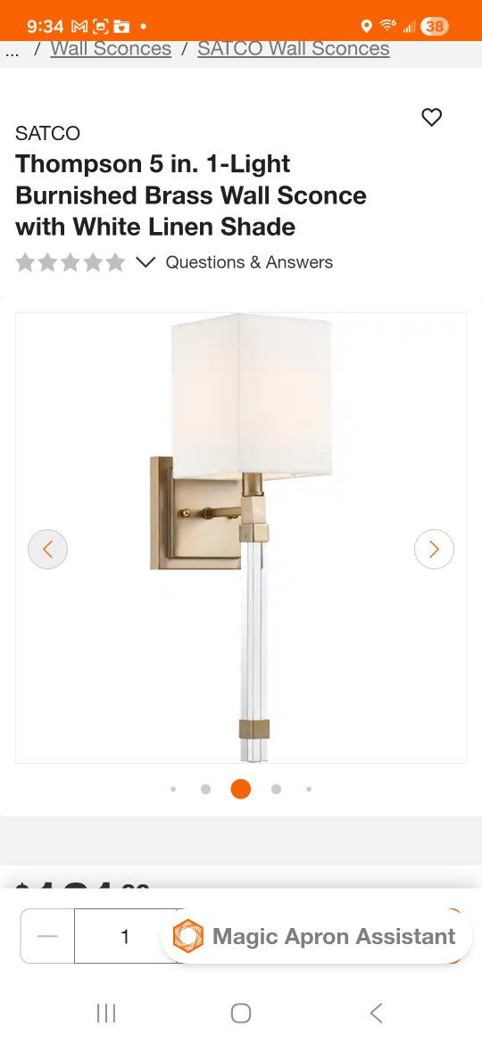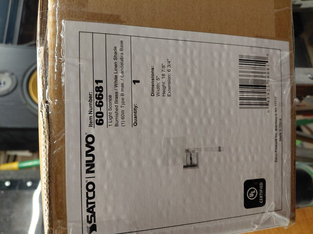 5 in. 1-Light Burnished Brass Wall Sconce with White Linen Shade. I have 3 on these brand new in the box. Retail for $161.
