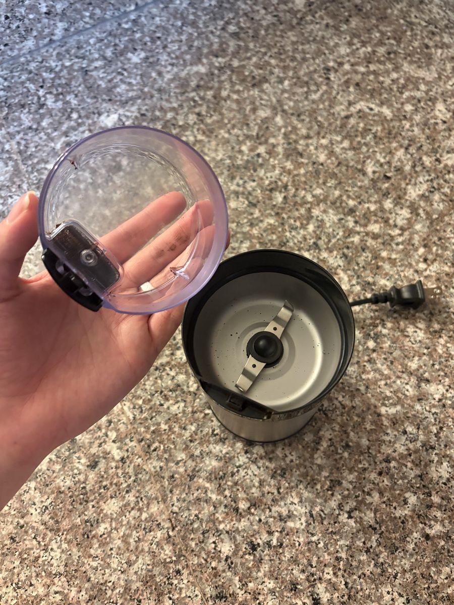 Zelle• STAINLESS STEEL BLADES AND BOWL - The sharp blades and durable grinding bowl are built to last, delivering uniform grinds with every use • GRIND YOUR FAVORITES! - Stainless steel blades quickly grind your favorite coffee beans, herbs, spices, grains, and more • ONE TOUCH PUSH-BUTTON CONTROL - Intuitive push-button control lets you easily customize the grind consistency, from coarse to fine • LID-LOCKING SAFETY FEATURE - No spills, no accidents. The integrated safety mechanism allows the blades to turn on only when the lid is securely locked • 30%* BETTER GRINDING - This coffee grinder makes it simple to achieve the uniform grind that makes a delicious cup of coffee; Includes Coffee Grinder, Grinder Bowl