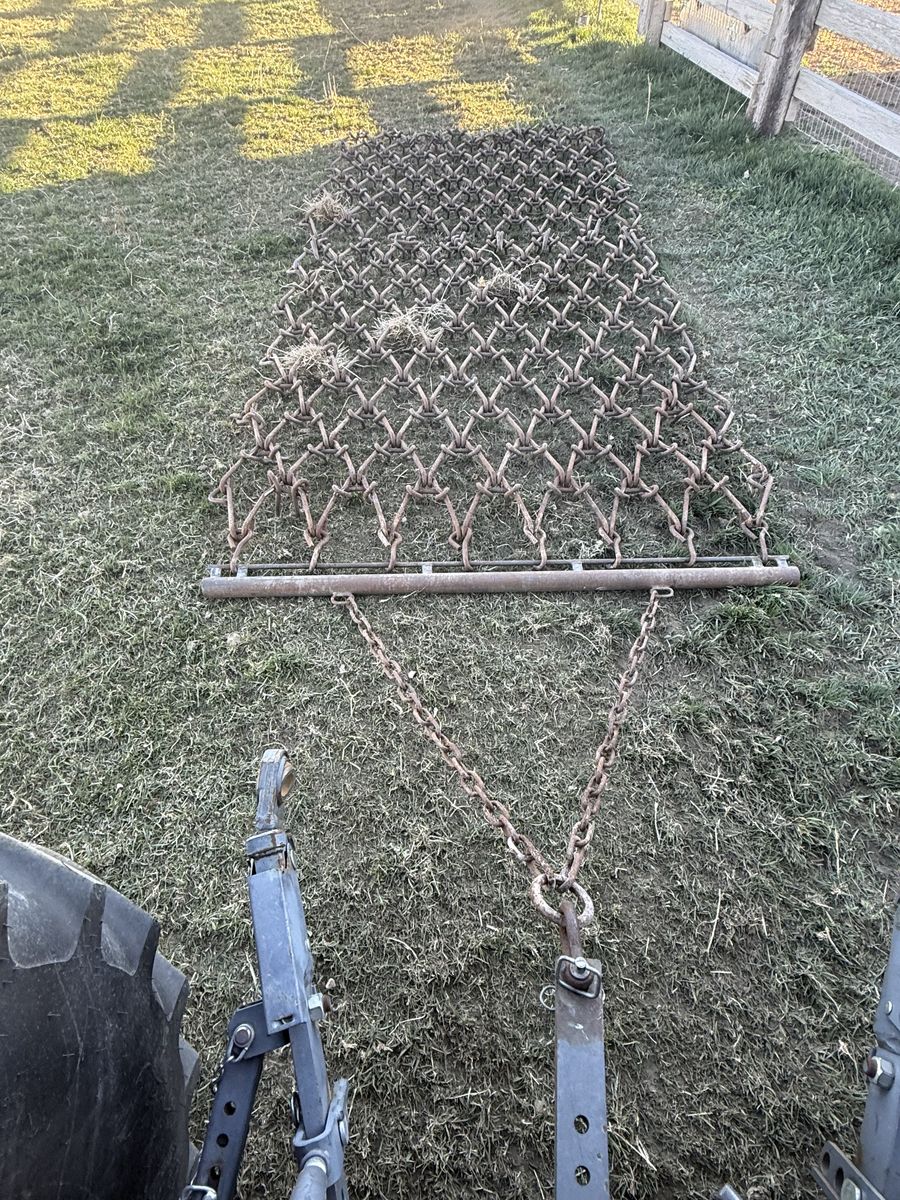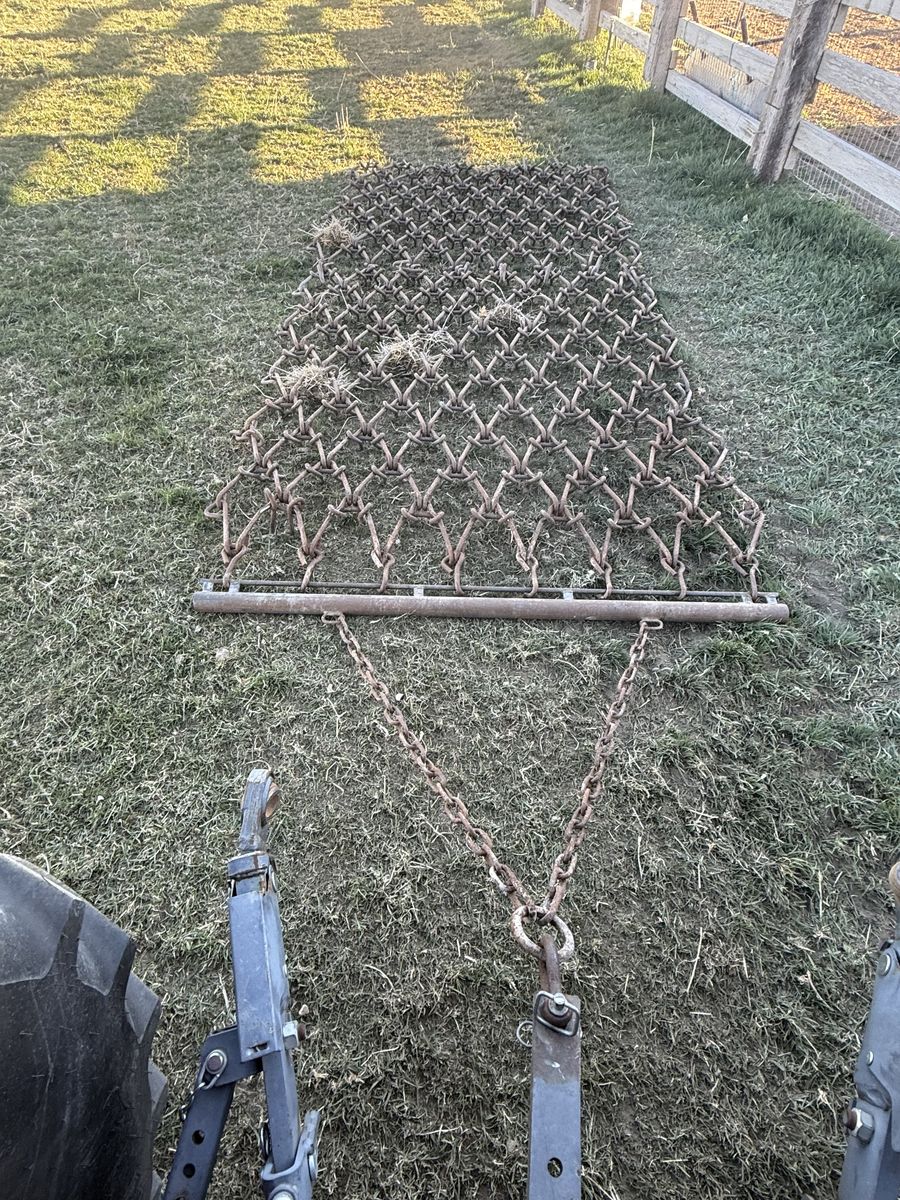 It has a 6’ wide drawbar with H/D chain for hooking to the draw bar.