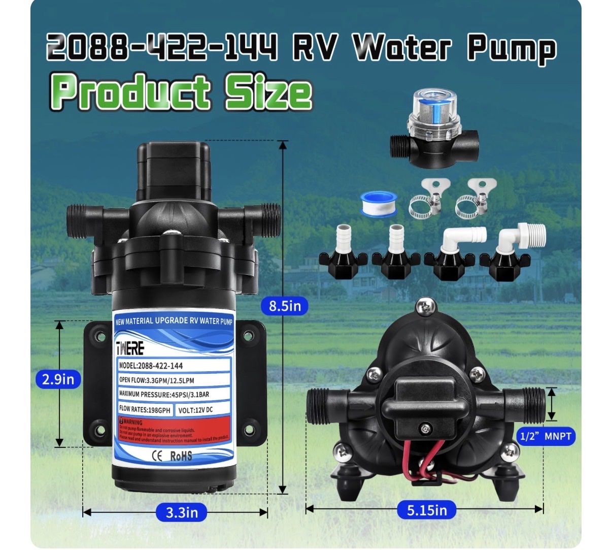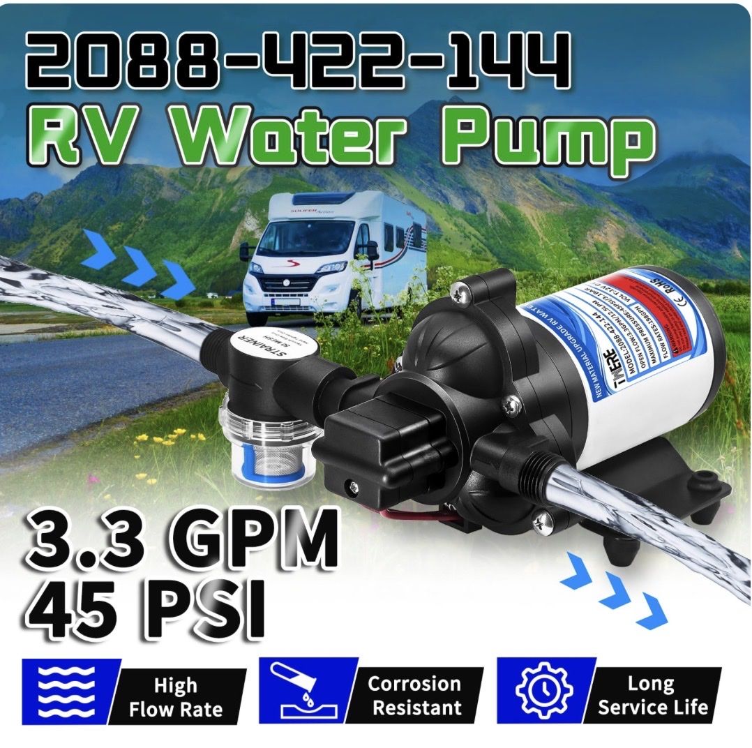 Venmo2088-422-144 Diaphragm Pump,12 V 45 PSI RV Water Pump,3.3 Gallons Per Minute Fresh Water Pump with 1/2MNPT Connection for RV Marine Yacht