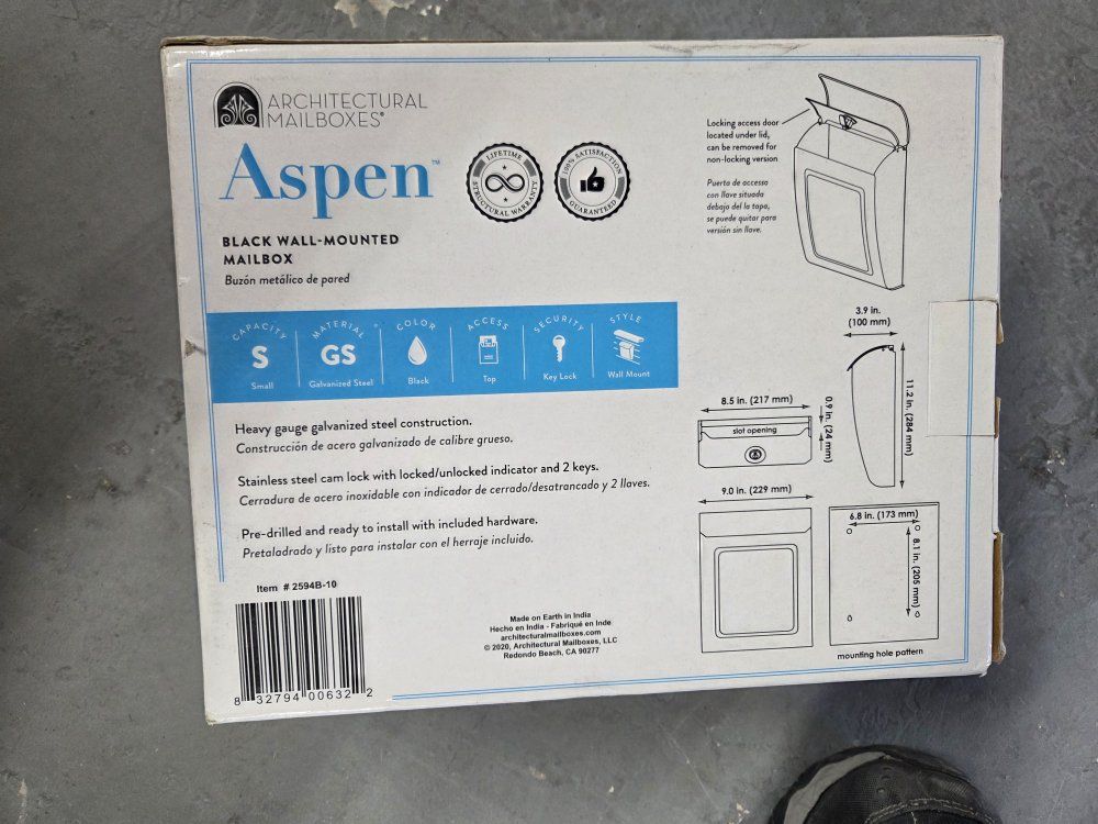New Aspen Wall Mounted Mailbox. Ready to use.