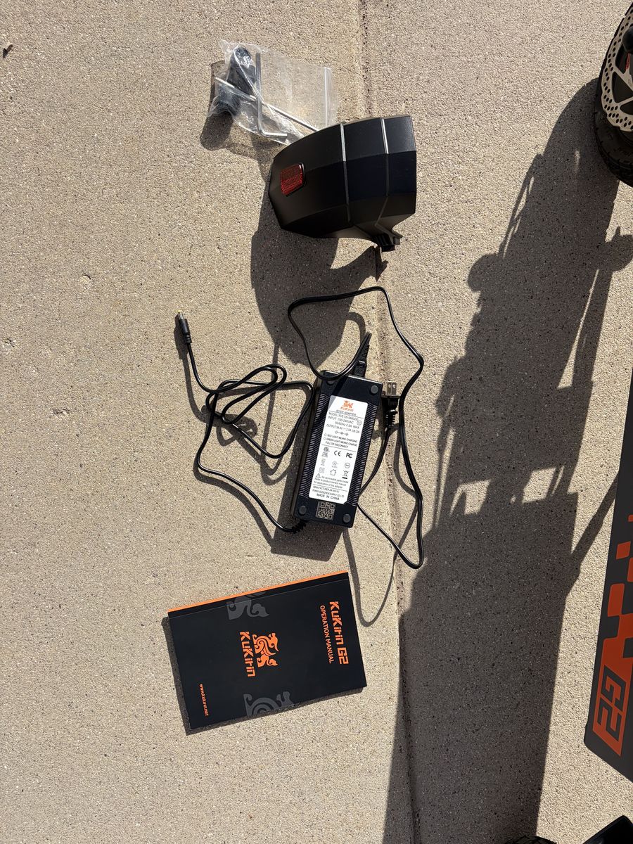 It comes with the charger, fender accessory, handlebar hardshell bag, manual, and everything that came in the box (see picture).
