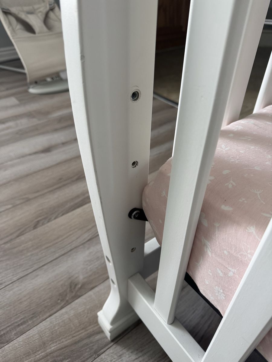 Baby Crib Set – Like New condition Crib, mattress, 2 mattress covers, and 2 baby girl fitted sheets all included. Gently used, clean and smoke free home. OBO