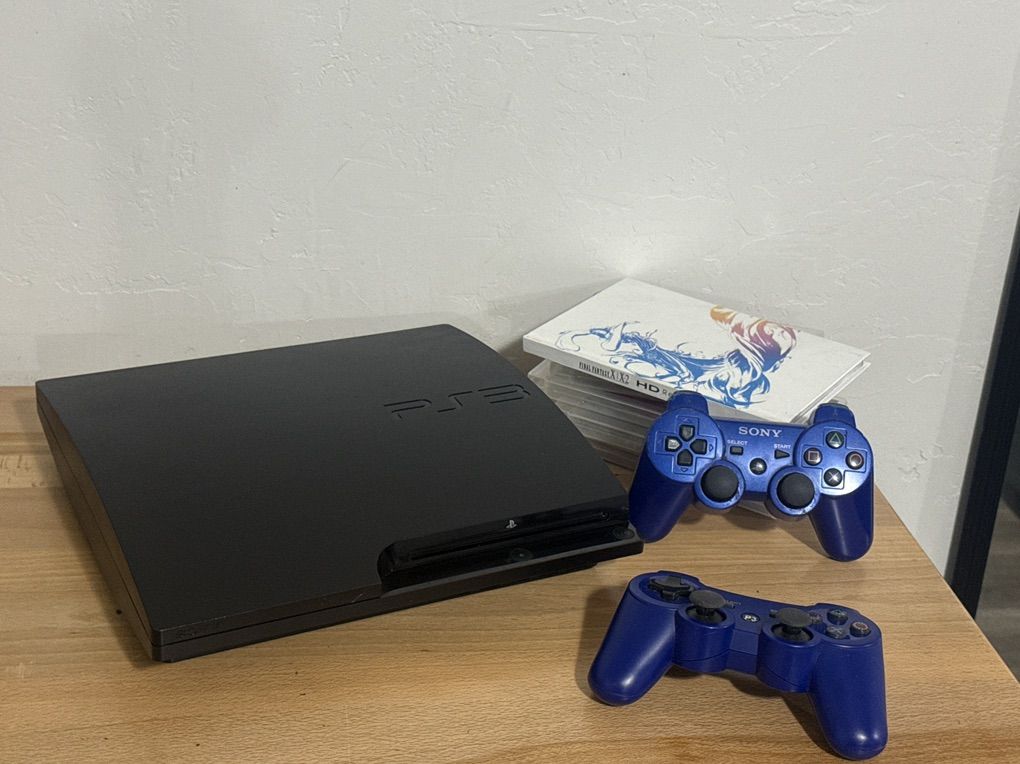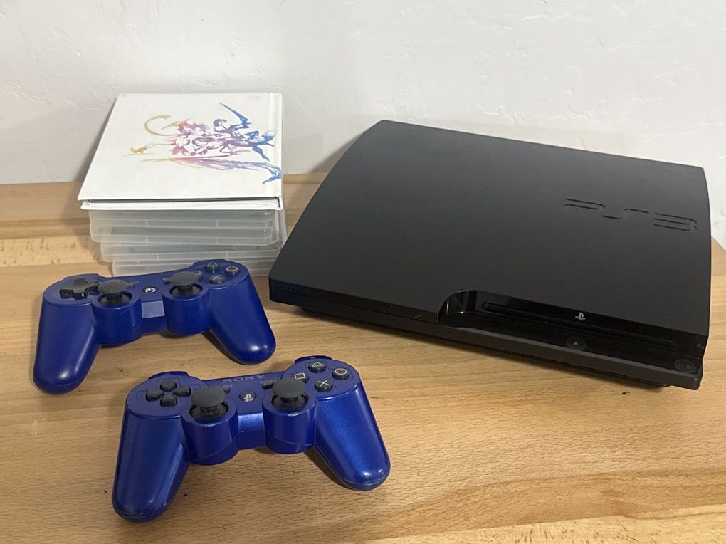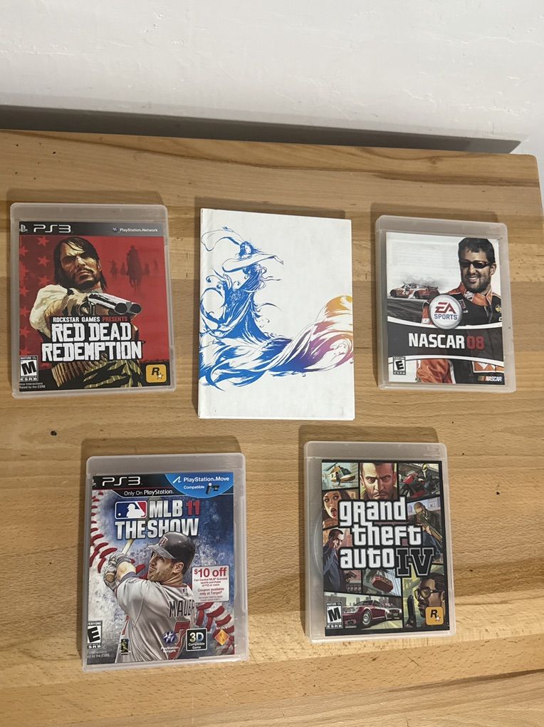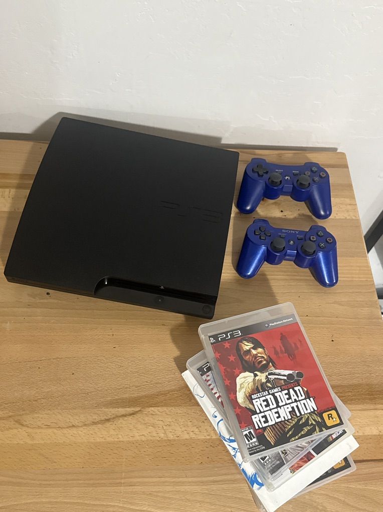 SONY PlayStation 3 slim console 160GB with power cord, HDMI cable, two controllers with charger cord and 5 games Included: Red Dead Redemption, NASCAR 08, MLB 11 The Show, FINAL FANTASY X / X-2 HD Remaster, Grand Theft Auto IV PlayStation 3 slim console model #CECH-3001A 160GB pre-owned tested in good condition