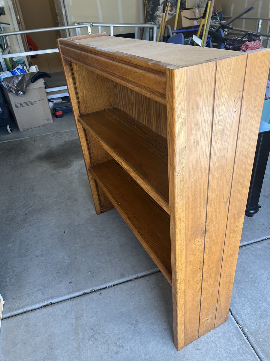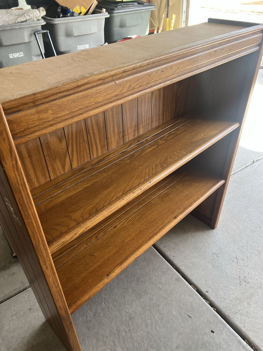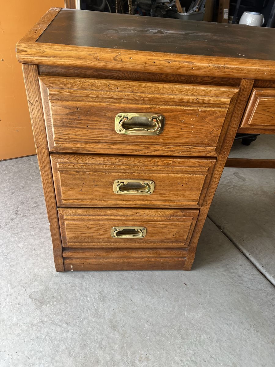 Desk with removable hutch and matching chair in good used condition. Great for a home office, student workspace, or bedroom setup.