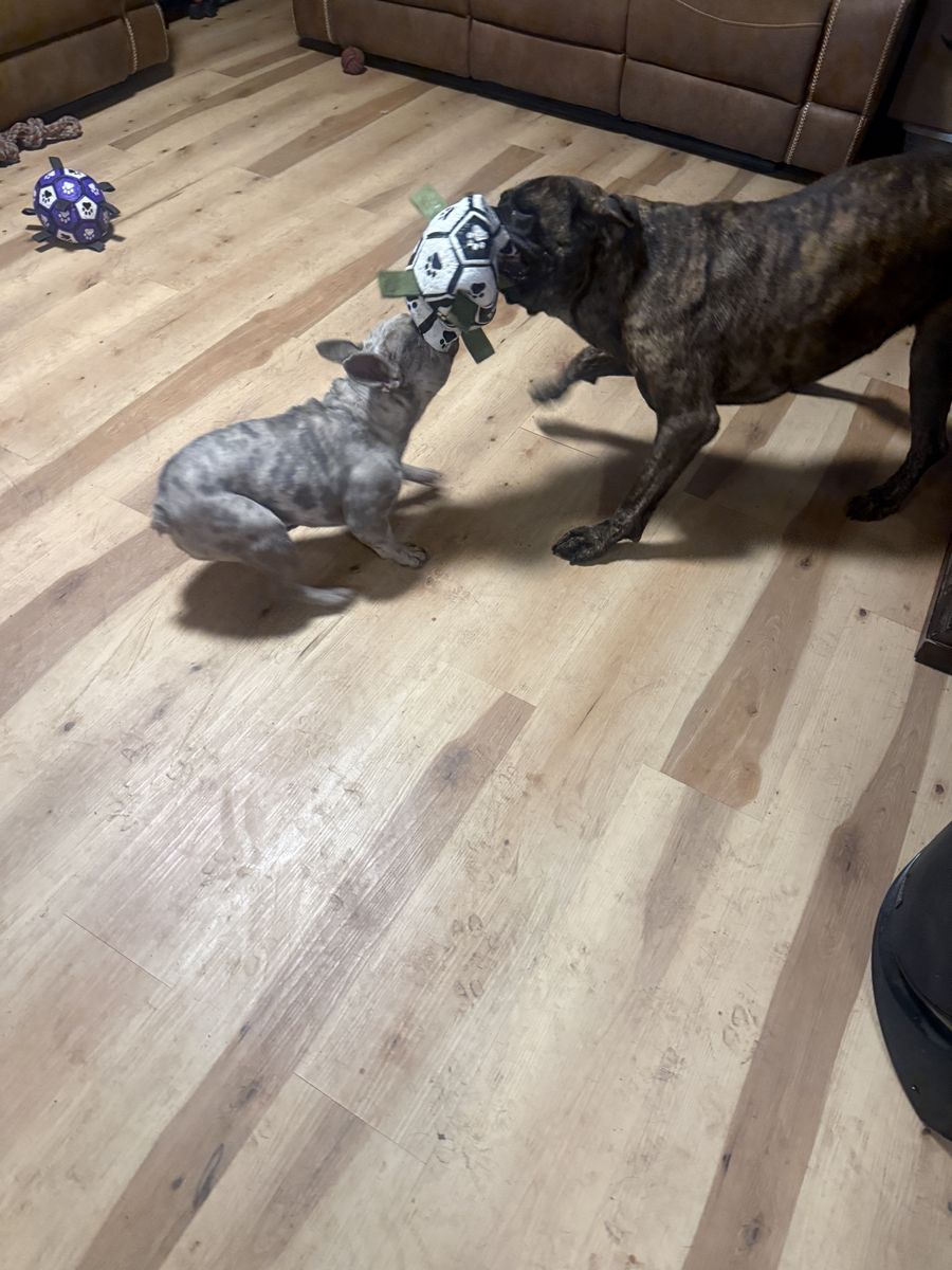 VenmoWe have a short Hair Frenchie named Winston and he is already neutered. He has only one eye and loves to cuddle. We acquired him through a friend who could no longer have him. We already have our own dogs to take care of. We think he would be best off In a home with only big dogs with no cats. He is kennel trained but doesn’t like being inside it for long periods of time. We put him in the kennel at bedtime with a bark collar at night. He is very quiet when he wears it. If you don’t mind sleeping with dogs in your bed he loves to cuddle when you go to bed. We will give you a kennel for free if you need one.