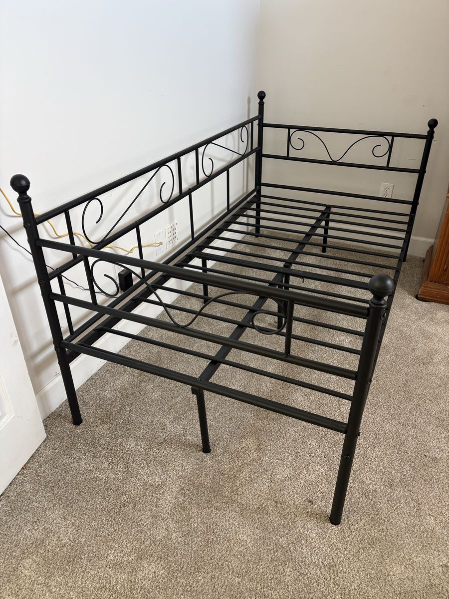 VenmoBlack in color. Sturdy and very nice design. Fits a twin mattress. Smoke free and pet free.