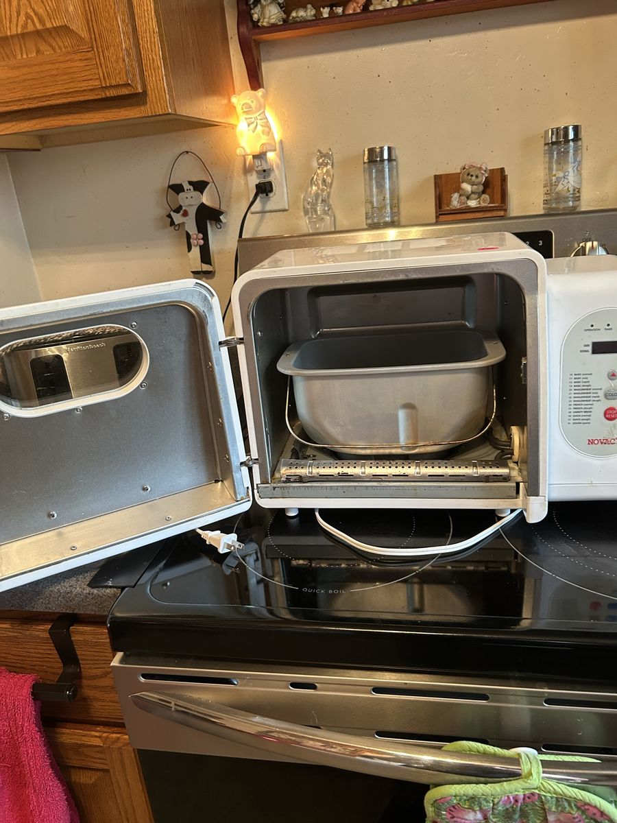 VenmoVery clean Novac Automatic Breadmaker, model RBM2222ASL. This is a reliable machine capable of 1.5 lb and 2.0 lb loaves. Includes: Original machine, bread pan, kneading paddle, and the original Instruction Manual/Cookbook. Settings: Features 12+ cycles including French Bread and Pasta Dough. Condition: Tested and fully functional. Very clean interior