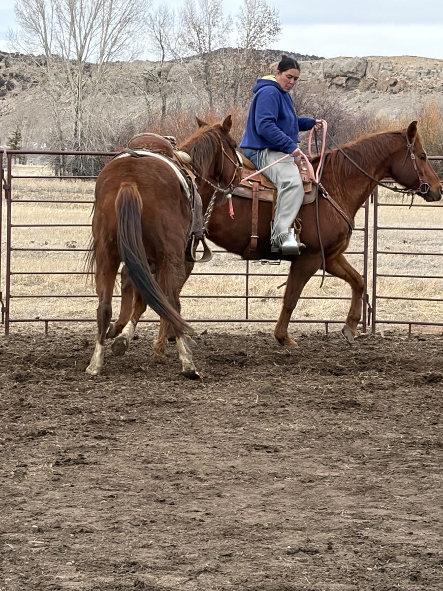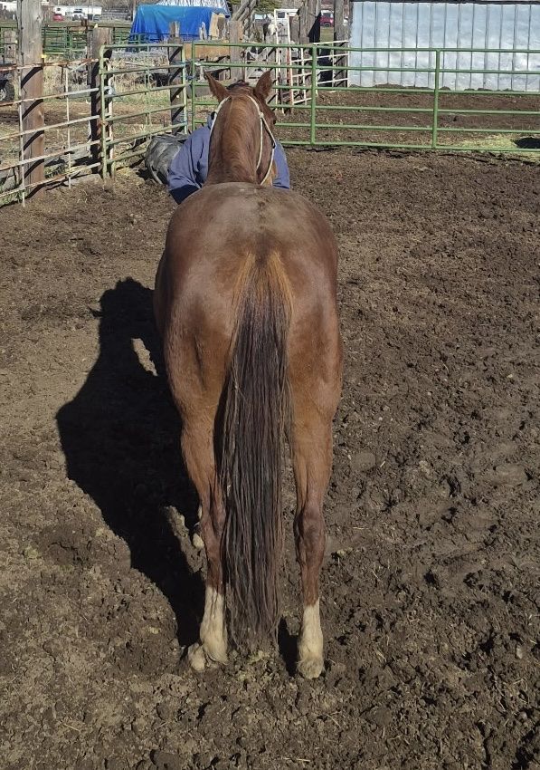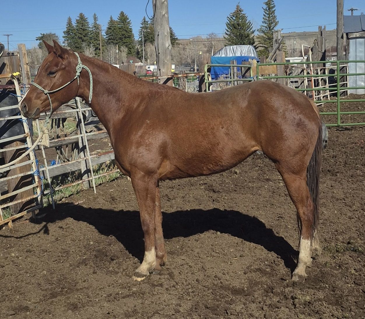 VenmoJUST A FRECKLED NIC aka pixie. Is a 3 year old sorrel filly, started and ready for a job with an experienced horseman. Pixie is bred to want to chase a cow around! Pixie is about 14hh maybe a bit taller. Leads, loads, trims, hauls. This mare has not bucked under saddle but she is a very energetic and high strung girl! Lots of go! Could be your next rope or barrel prospect! Located in Evanston wy