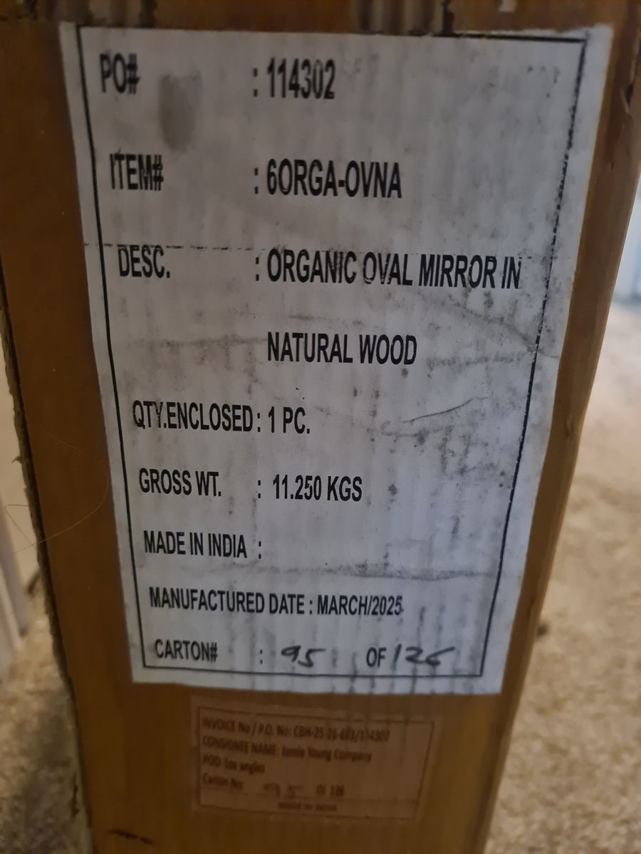 An imperfect oval shape in a natural wood finish creates an unexpected mirror that embraces its organic nature.