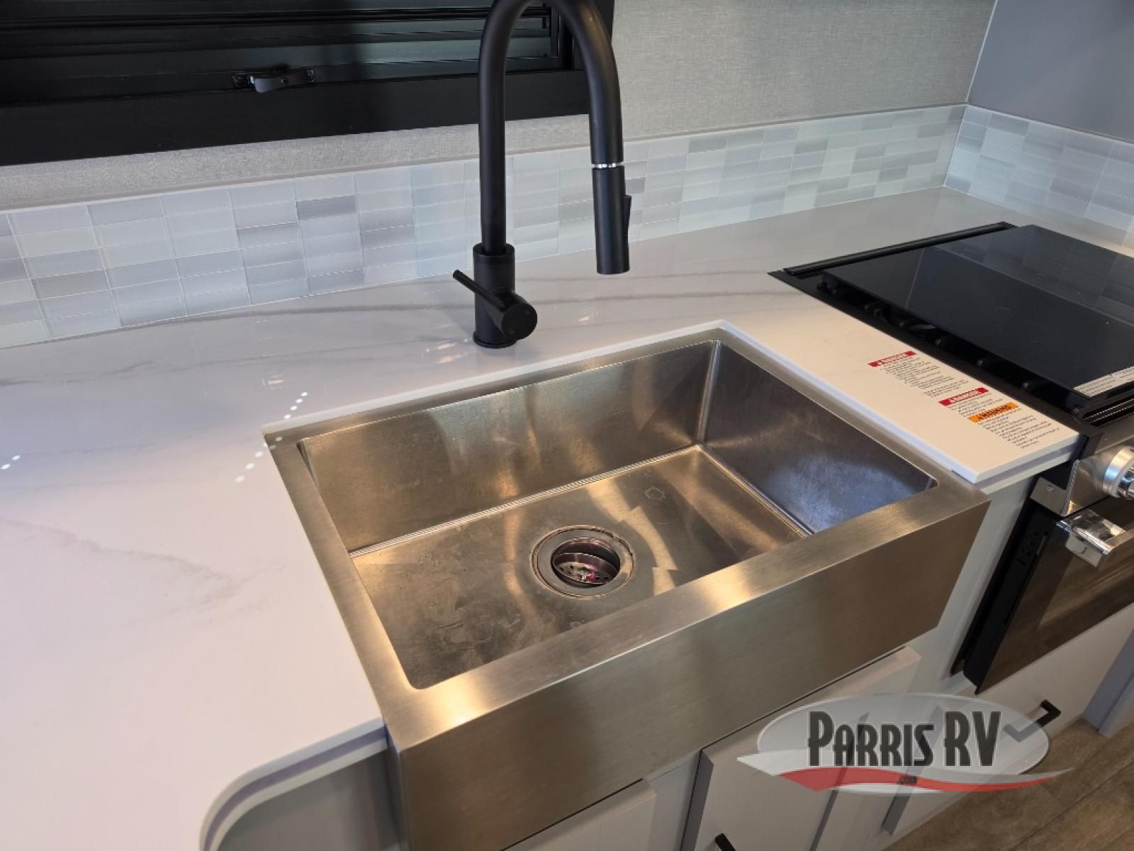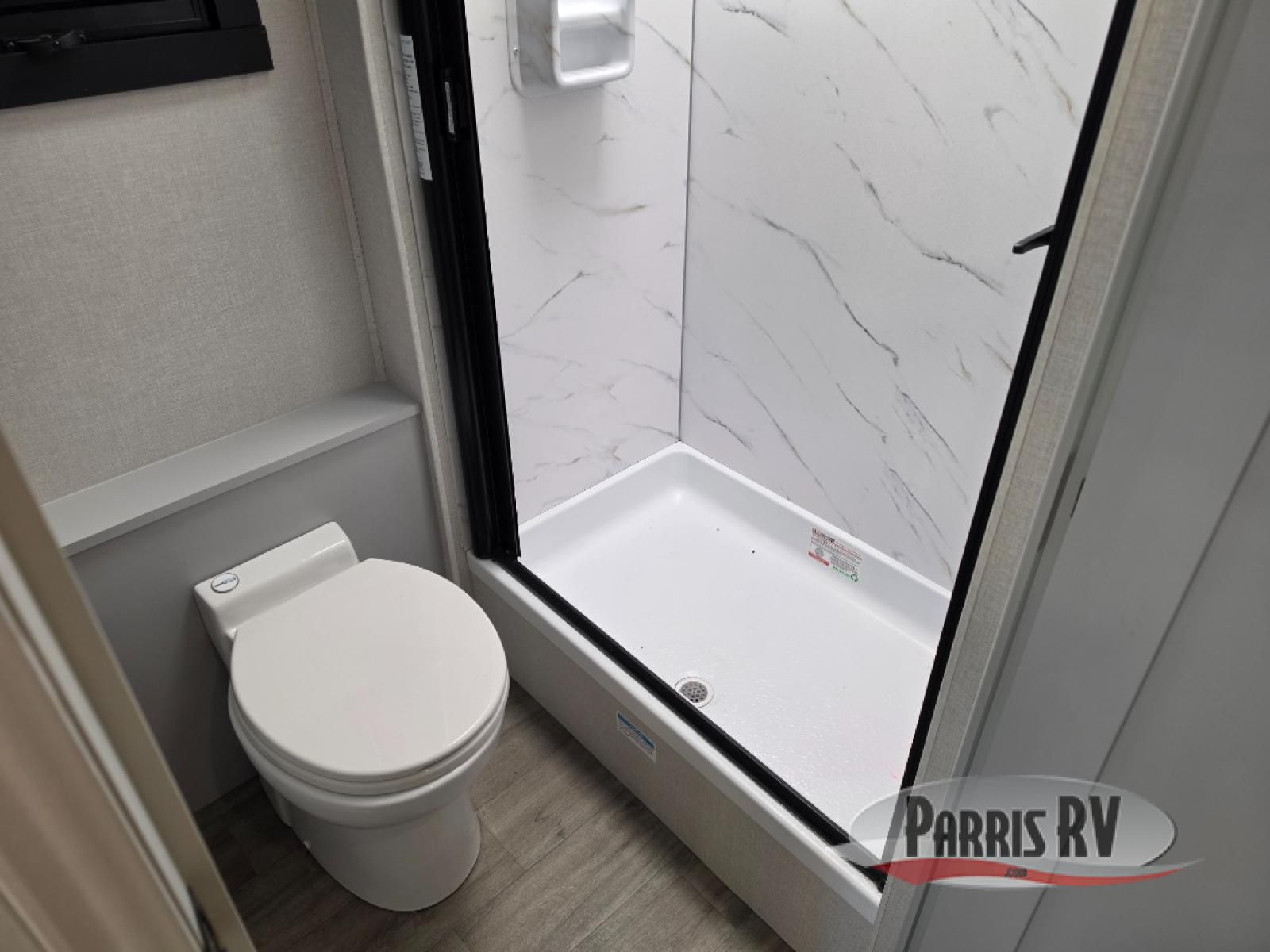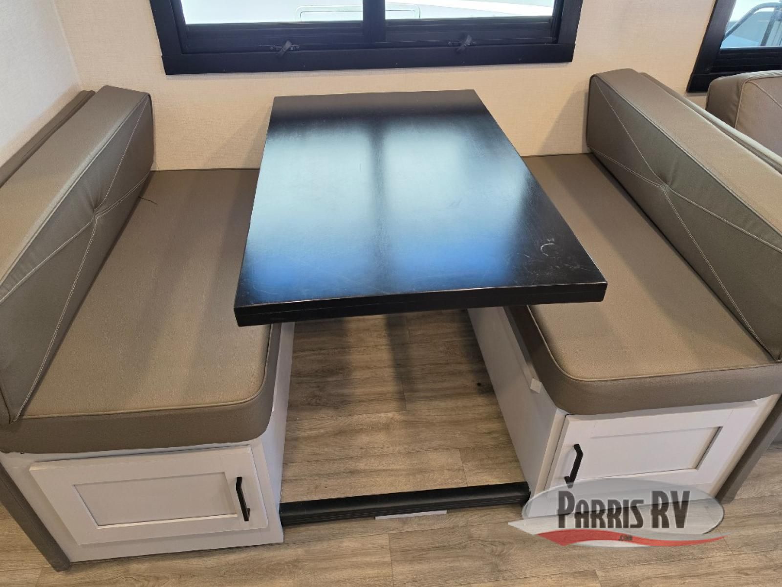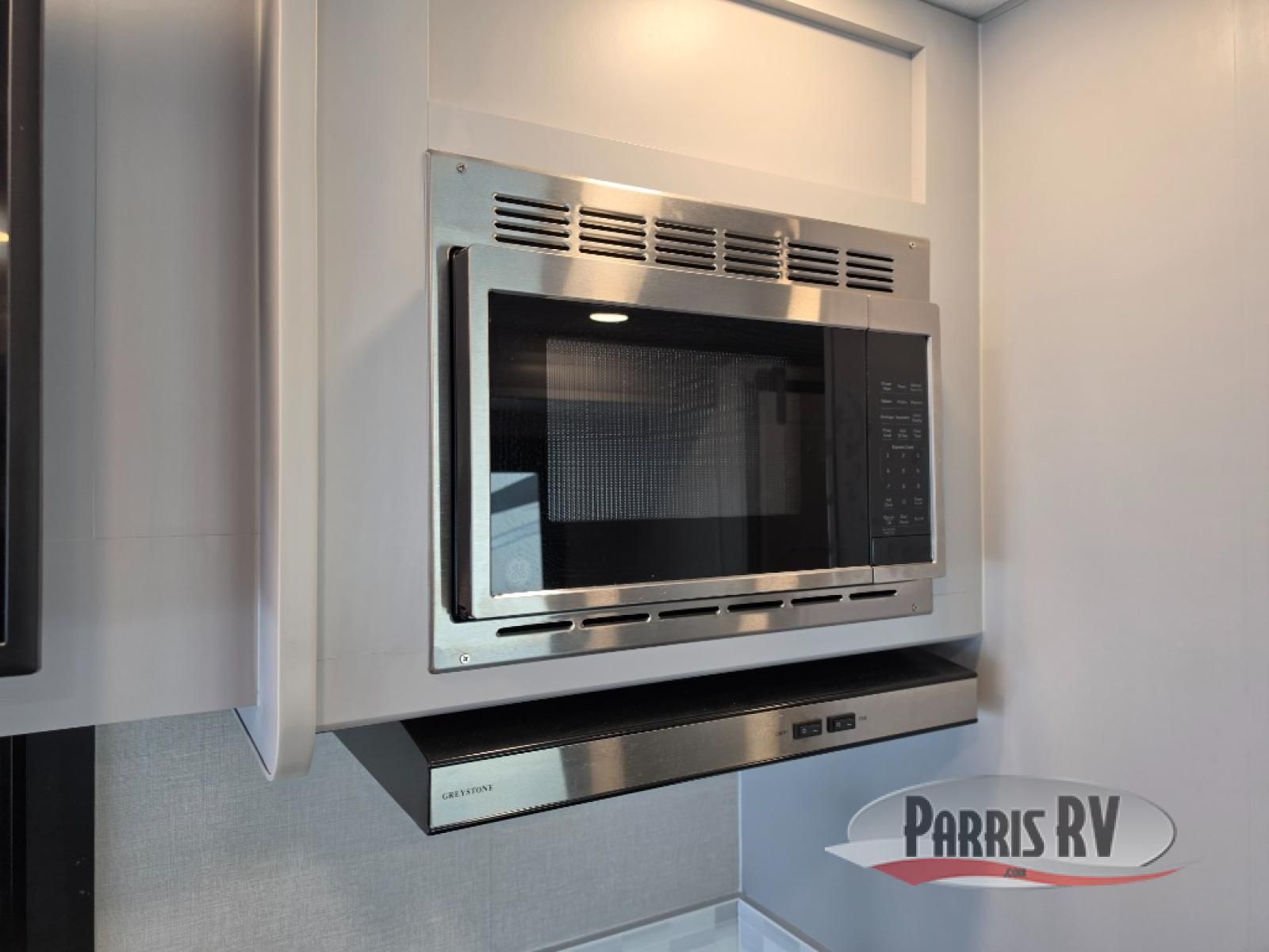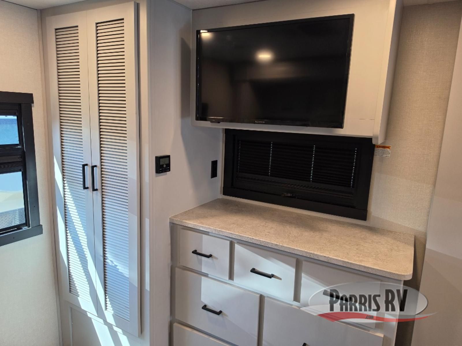 The whole gang will love this motorhome thanks to its drop-down overhead bunk, rear private bedroom, and 71" bunk/office/wardrobe space for versatility! Once breakfast has been prepared on the stainless steel three burner range, everyone can dine at the booth dinette or sit on the 63" sofa within the large slide out. There is a 40" LED TV across from the sofa for convenience, and you'll find two additional TVs; one in the bedroom and one outside! This model includes a full bath with a shower skylight, a retractable shower door, and a power bath vent to keep everything fresh. After you've gotten ready for the day, head outdoors to relax under the 17' power awning and watch the big game on the exterior TV!