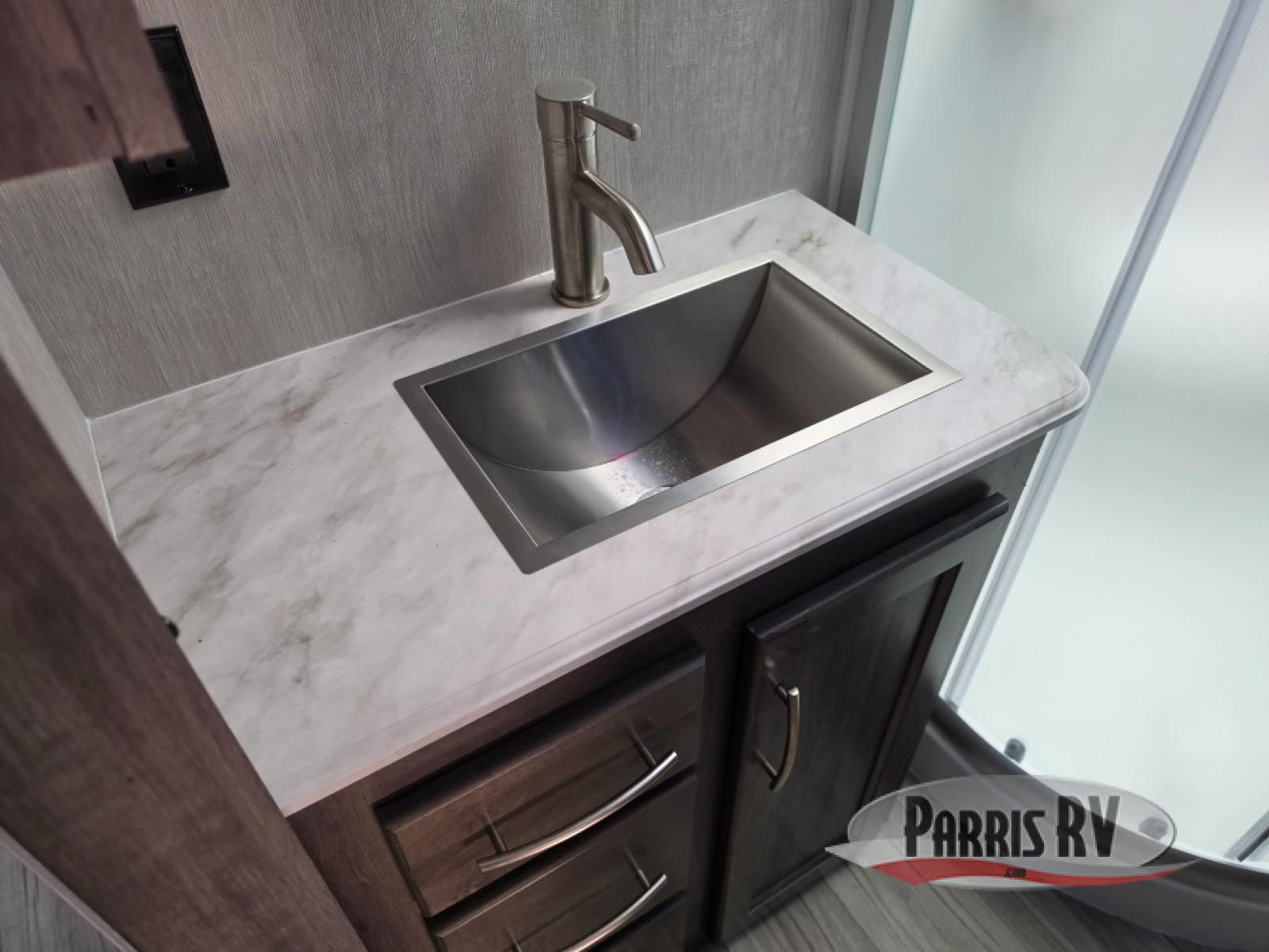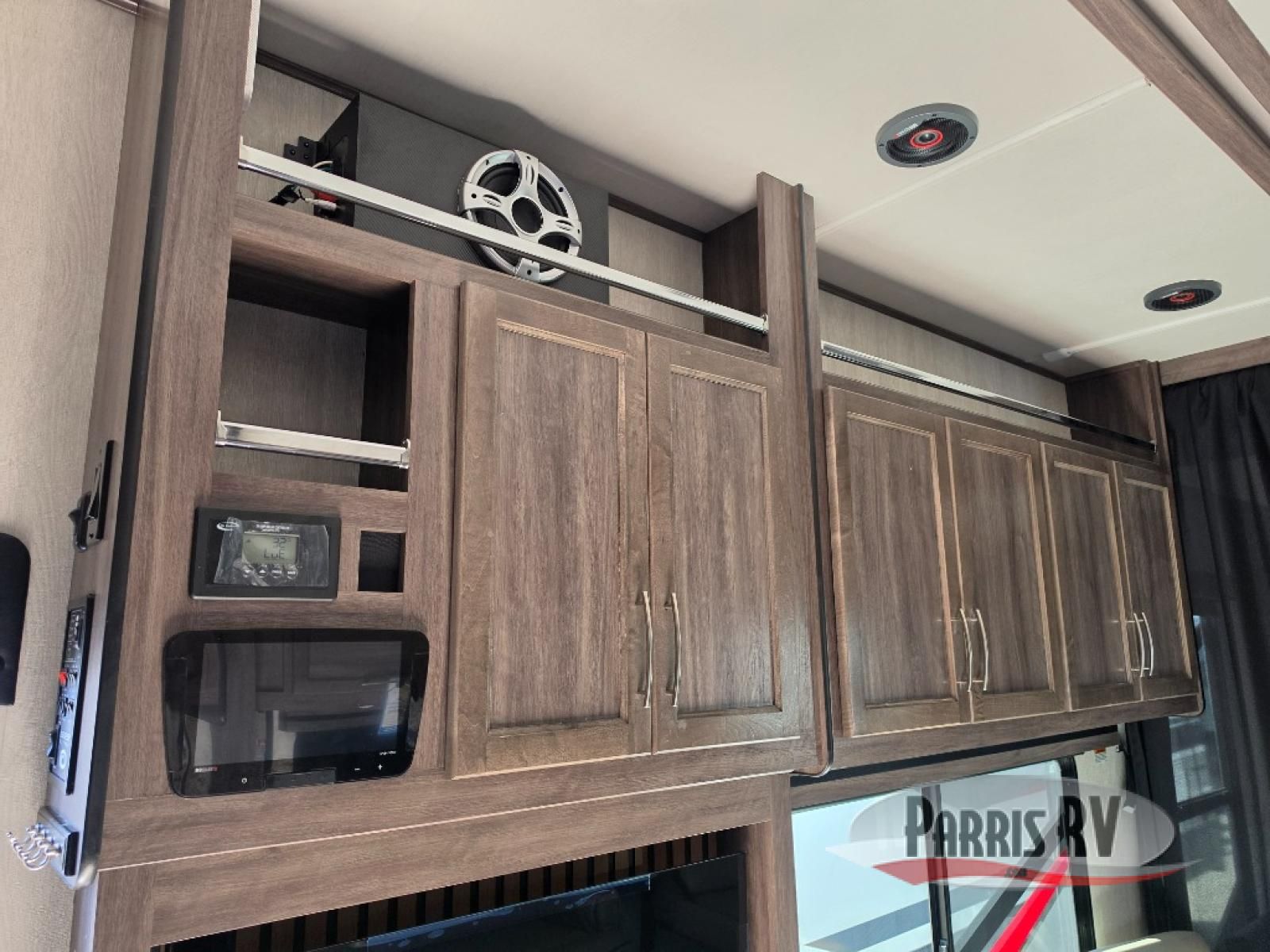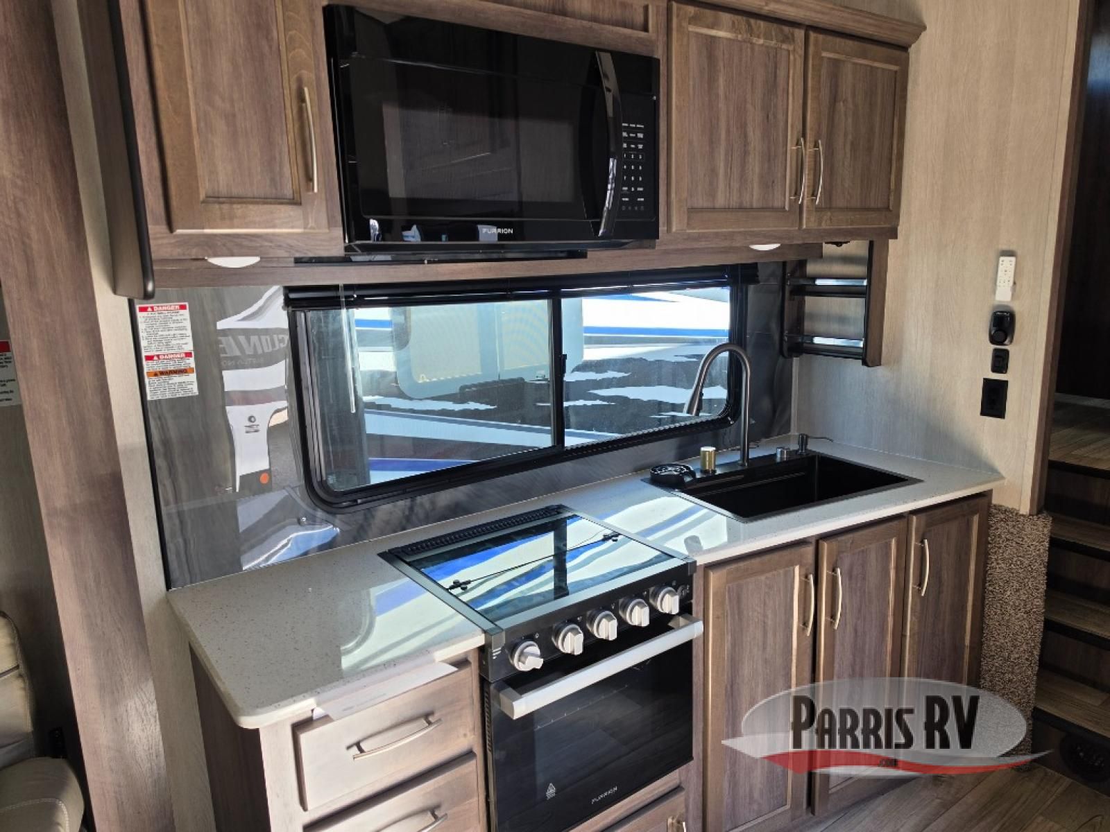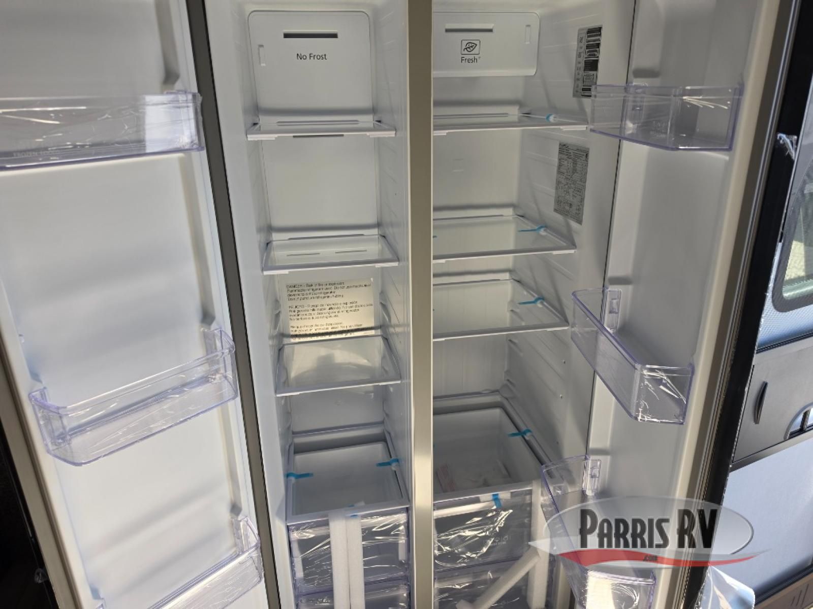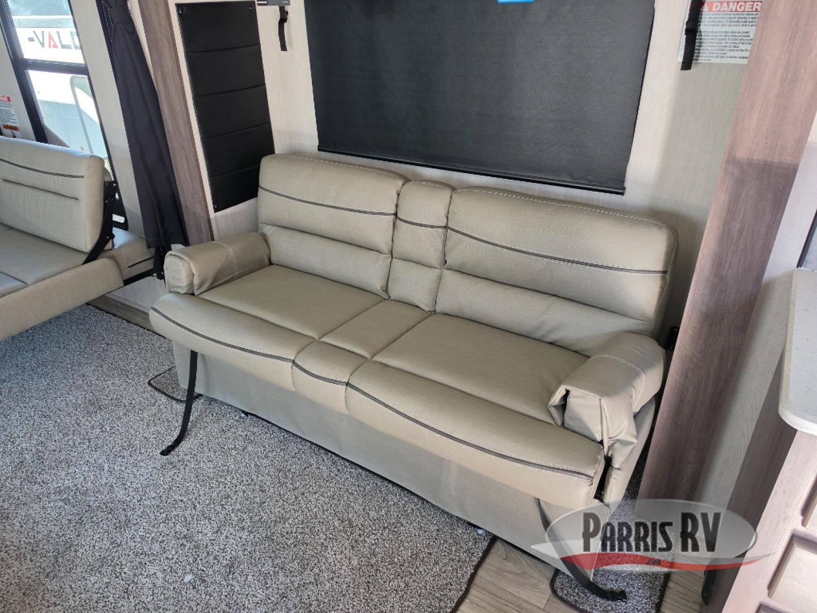 Sit back in one of the two lounge chairs on this Vortex toy hauler after exerting all of your energy out on the trails for the day! If you need to replenish your energy, grab some food from the 8-cubic foot refrigerator or heat up some leftovers in the XL residential microwave. The sofa table is good for eating meals or catching up with friends over dessert, and the full bathroom has a linen closet to store your towels. The private bedroom has a wardrobe slide to add space for moving about and storing your clothes, and you can also add another optional slide in the main living area.