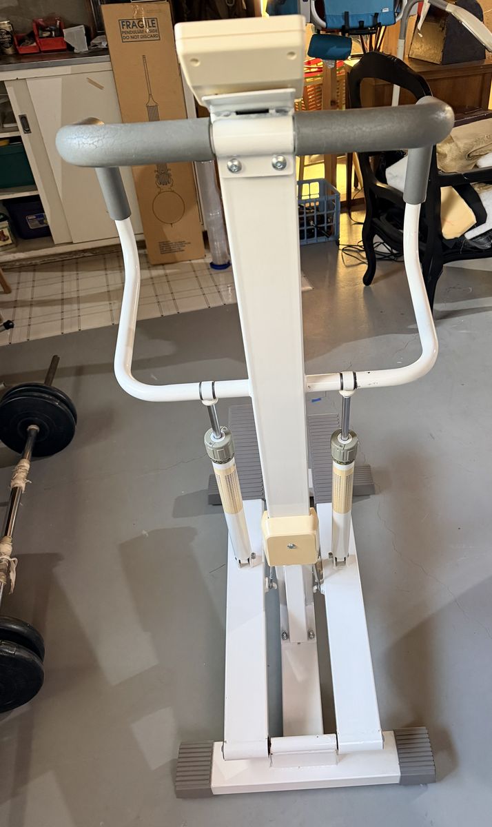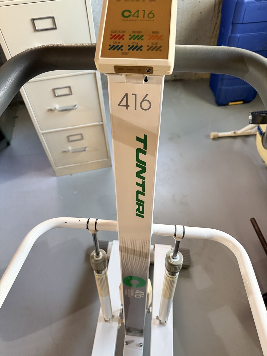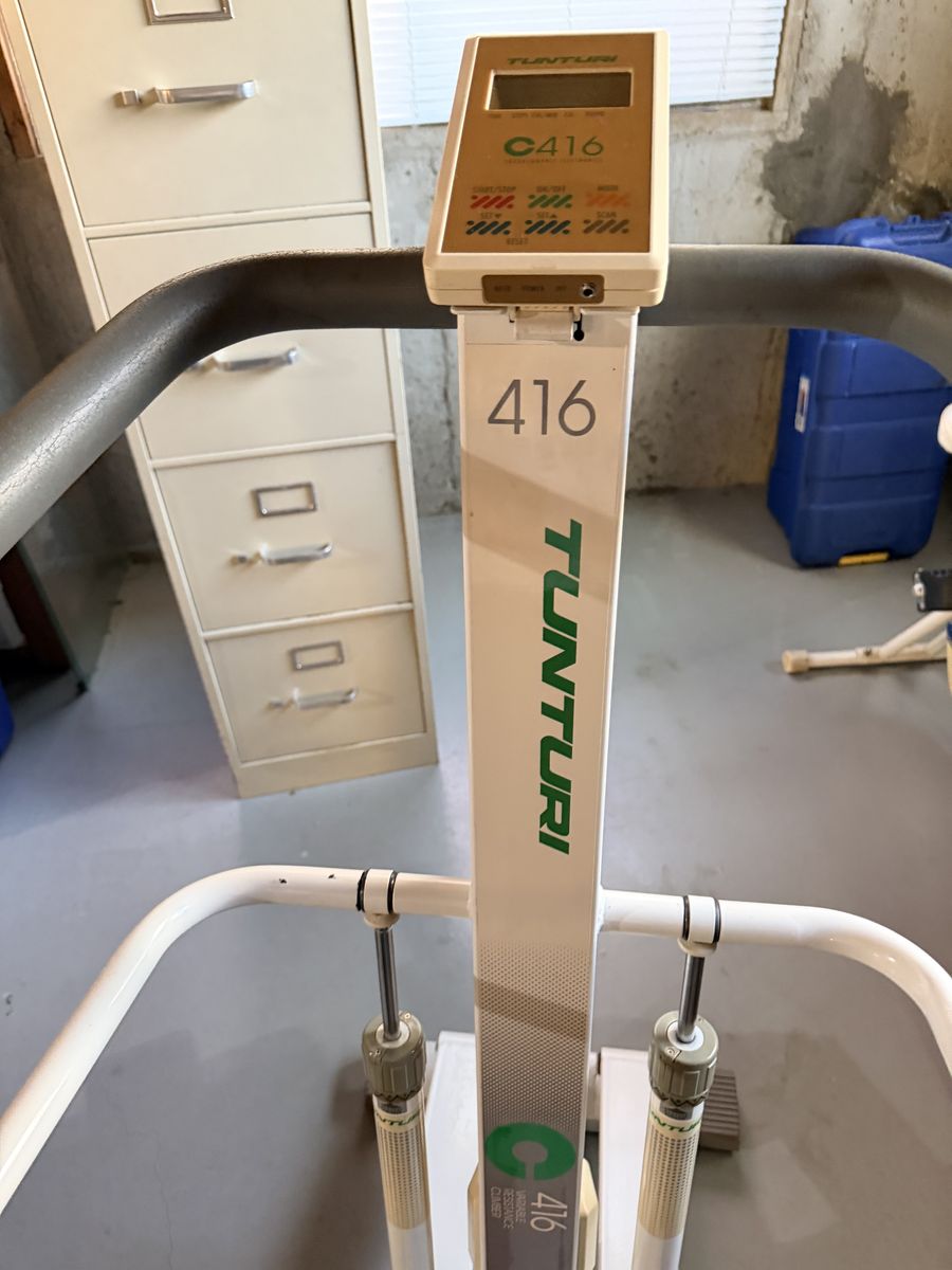 The Tunturi Variable Resistance Climber called by many the “Stepper” or “ Stair Climber.” allows you to control the intensity of your workout by adjusting the resistance level. This equipment provides one of the most effective low body and low-impact aerobic exercises possible. (All info from Tunturi’s Owners Manual which is included with this purchase). Not only is this easy to use, it’s convenient, no classes to pre- schedule , no weather to keep you from going and no special times for your workout. Cash only please.