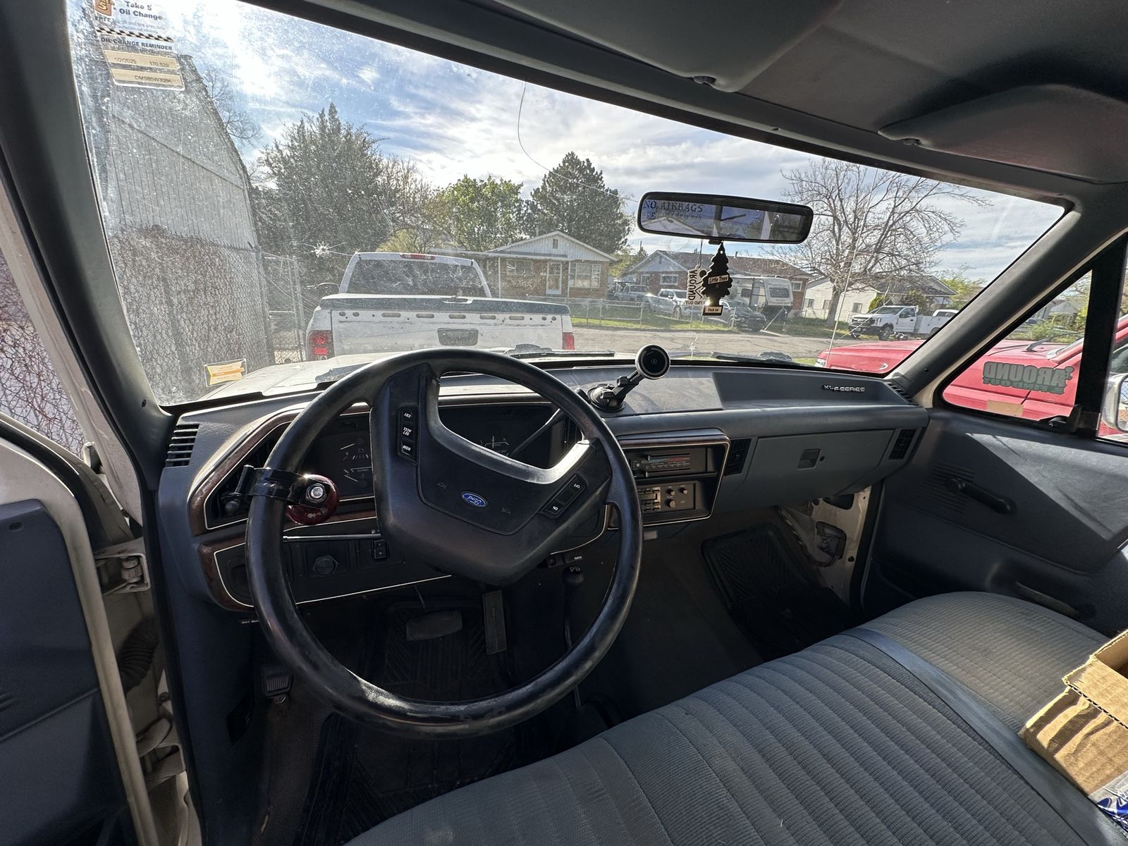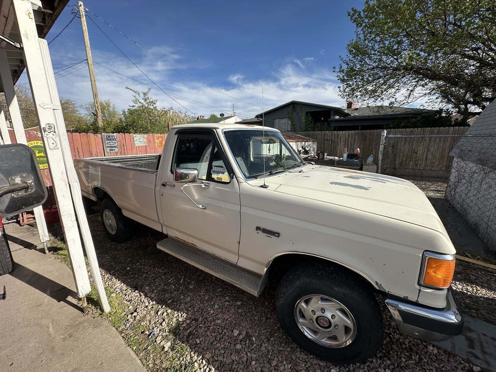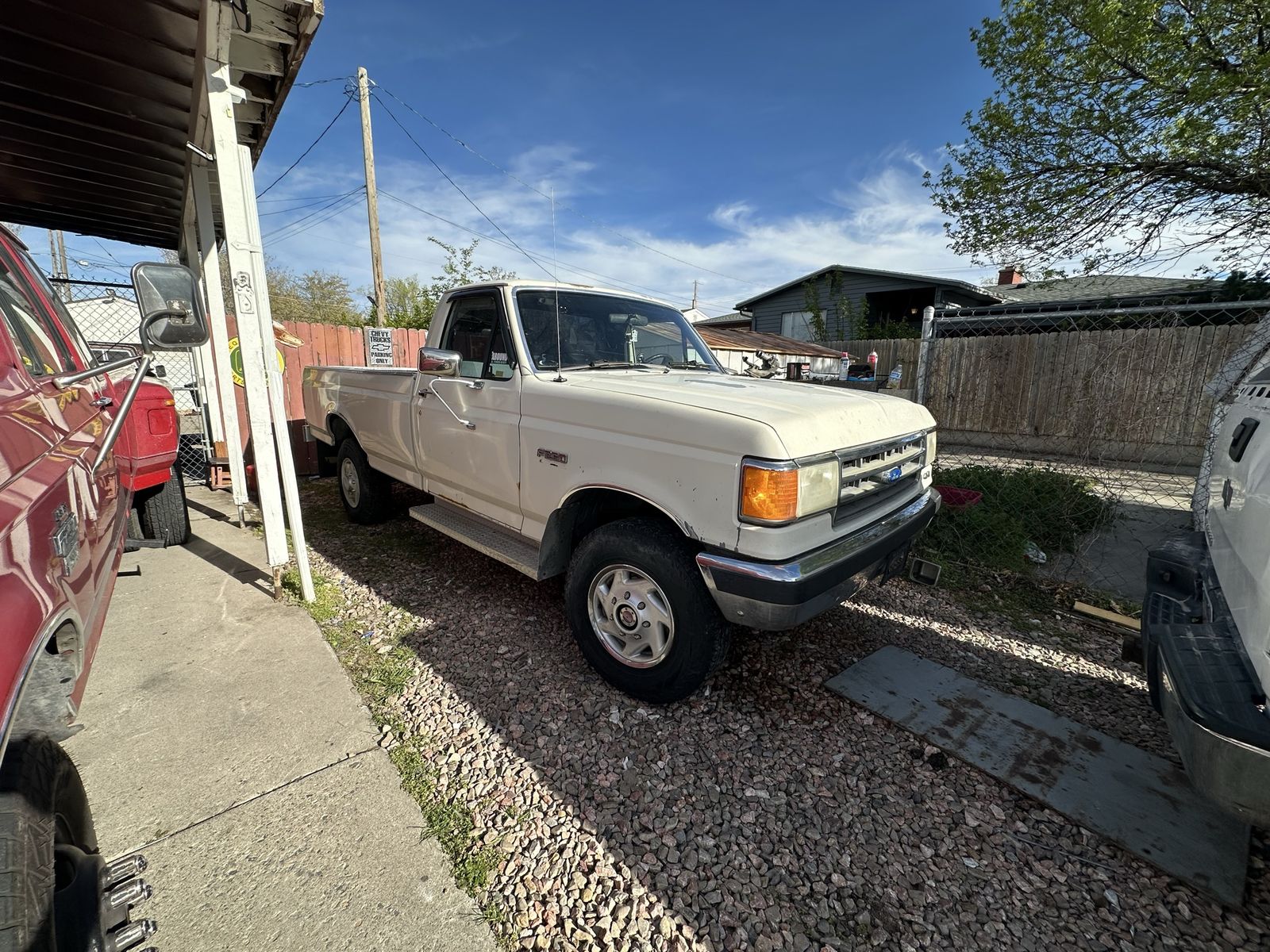 1989 F250 4x4 HD automatic transmisión , i had a hard time to make it running but i just replace the part in picture and starts right up , transmission is strong and engjne will need power steering hose repair and brakes i installed new high performance fuel pump , new filter,new starter ignition, and few more parts were Installed in engine including wires interior is great condition for the year blue , i have the hubcaps all 4 front 4x4 hubcaps no rust body very good condition clean title $2500 will take some more pictures later today
