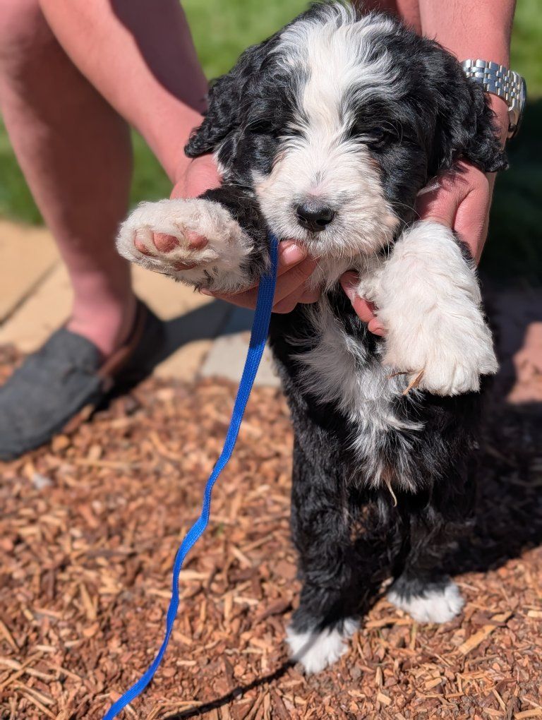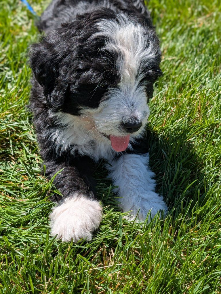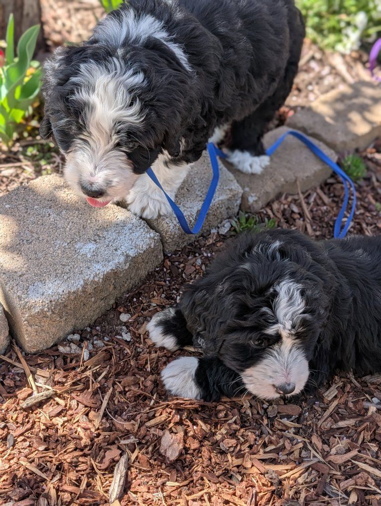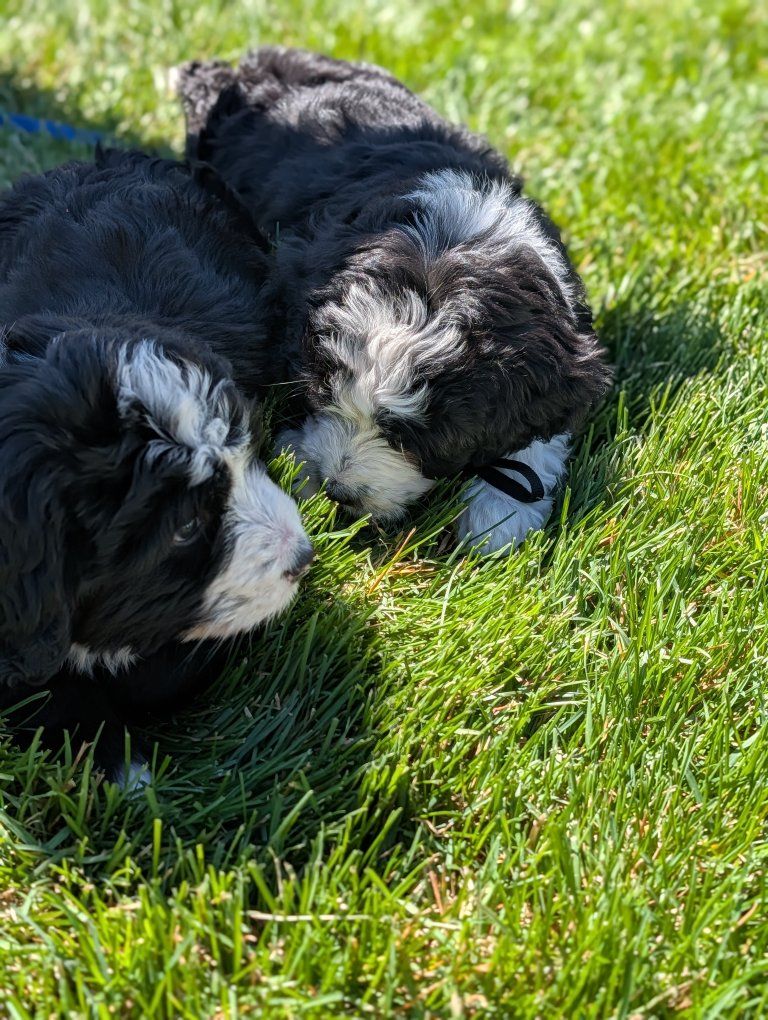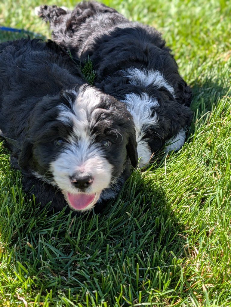 I have 3 absolutely beautiful Ultra bernadoodles for sale, they were born Feb 18th. 2 females and 1 male are still available. The mother is a full pure bred stunning Bernese mountain dog and the father is a bernadoodle..both of his parents were full bernadoodles.. so this creates a puppy that's roughly 3/4 Bernese and 1/4 doodle so you get most of the great advantages of having a Bernese with a larger life span and less shedding.