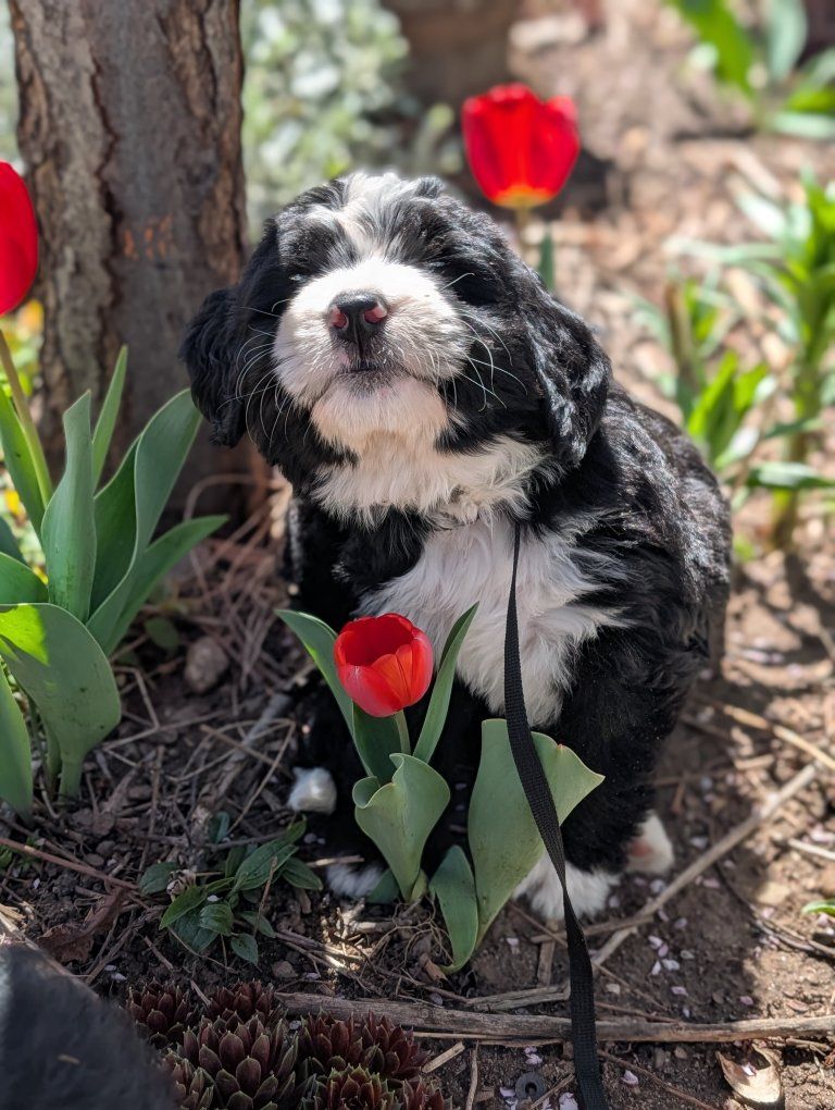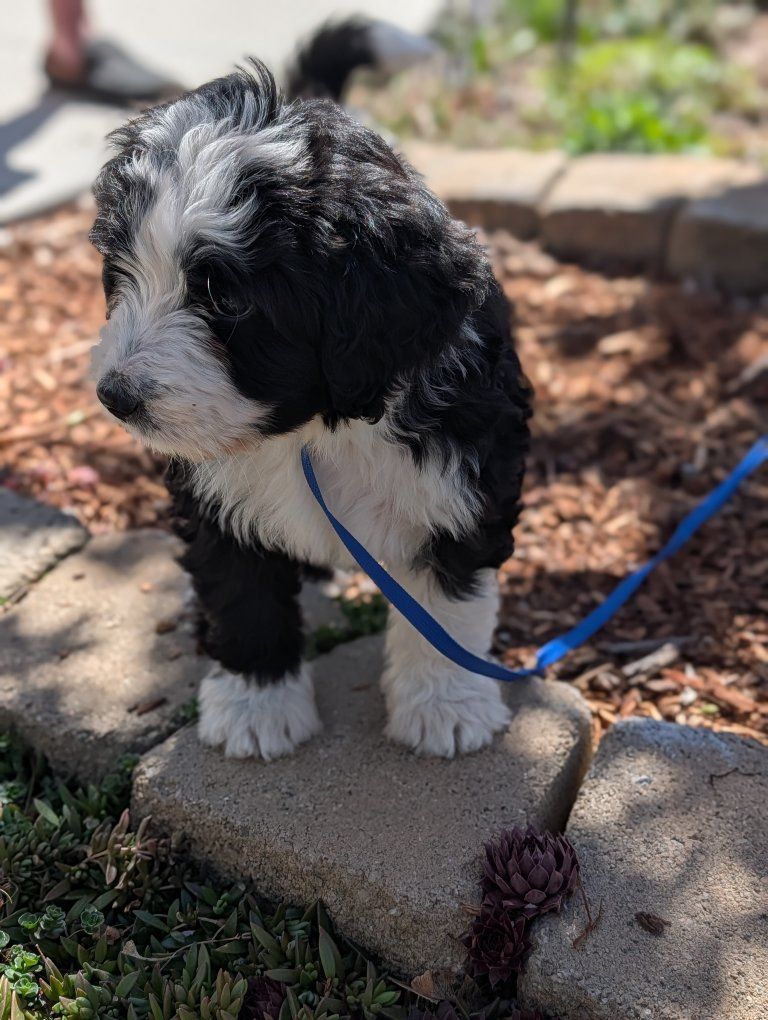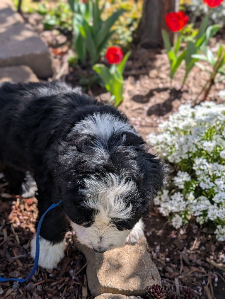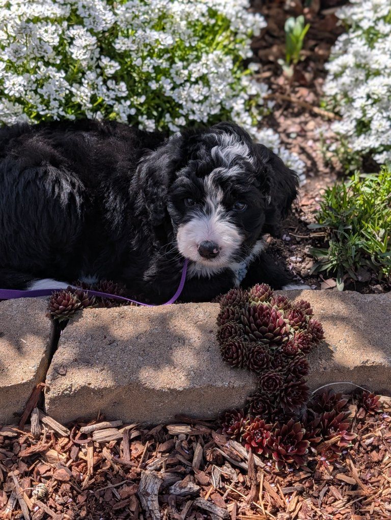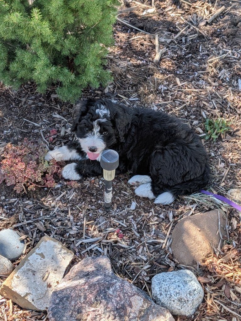 I have 3 absolutely beautiful Ultra bernadoodles for sale, they were born Feb 18th. 2 females and 1 male are still available. The mother is a full pure bred stunning Bernese mountain dog and the father is a bernadoodle..both of his parents were full bernadoodles.. so this creates a puppy that's roughly 3/4 Bernese and 1/4 doodle so you get most of the great advantages of having a Bernese with a larger life span and less shedding.