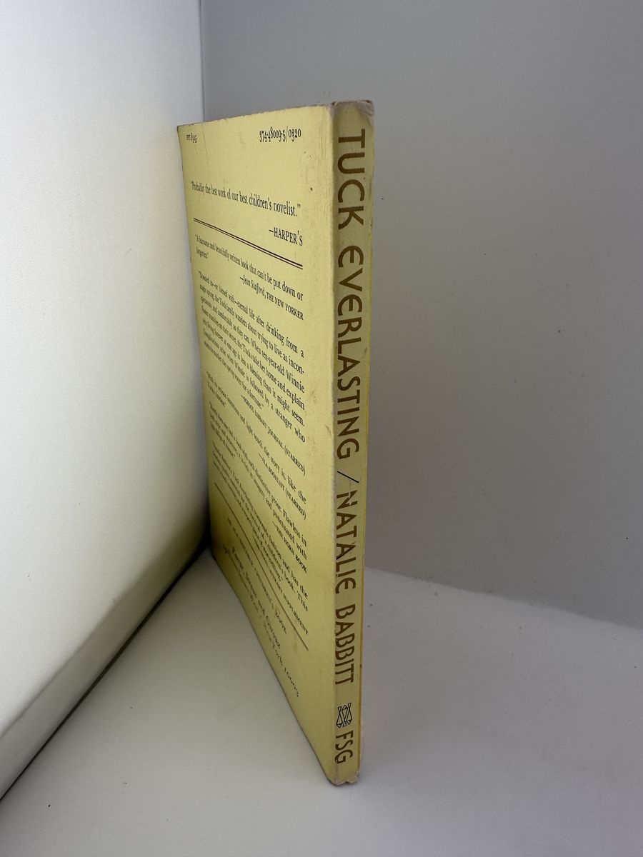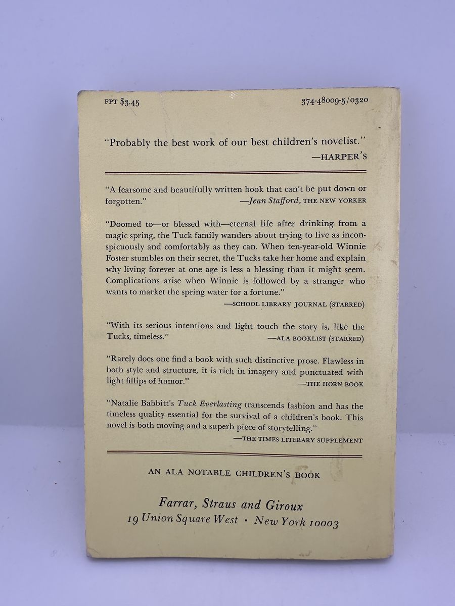 ApplePayClassic children’s novel Tuck Everlasting by Natalie Babbitt. This vintage 1986 paperback tells the timeless story of a young girl who discovers a family with a mysterious secret—eternal life. A widely taught school novel exploring themes of immortality, choice, and growing up. Solid reading copy with visible wear.