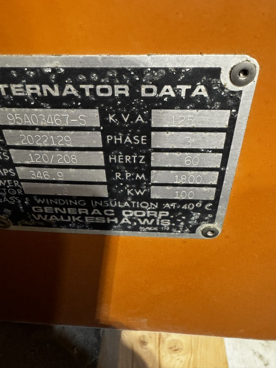 VenmoI have a used Generac generator, that has 397.1 hours on it. It is a 120/208, 100 KW 3 phase that can run off of natural gas or propane. It is currently set up to run on propane. It has a new battery, and I replaced the coolant reservoir as it was broken. The generator came from a decommissioned cell site and had sat in their yard for roughly 2 years. It is currently in my garage, as far as I can tell it runs well, but I have not had it load banked or tested. It is being sold as is. pick up only. The generator has metal casters attached to it to allow it to roll so to pick it up, you will need a tilt bed trailer or something with a drop gate and most likely a winch